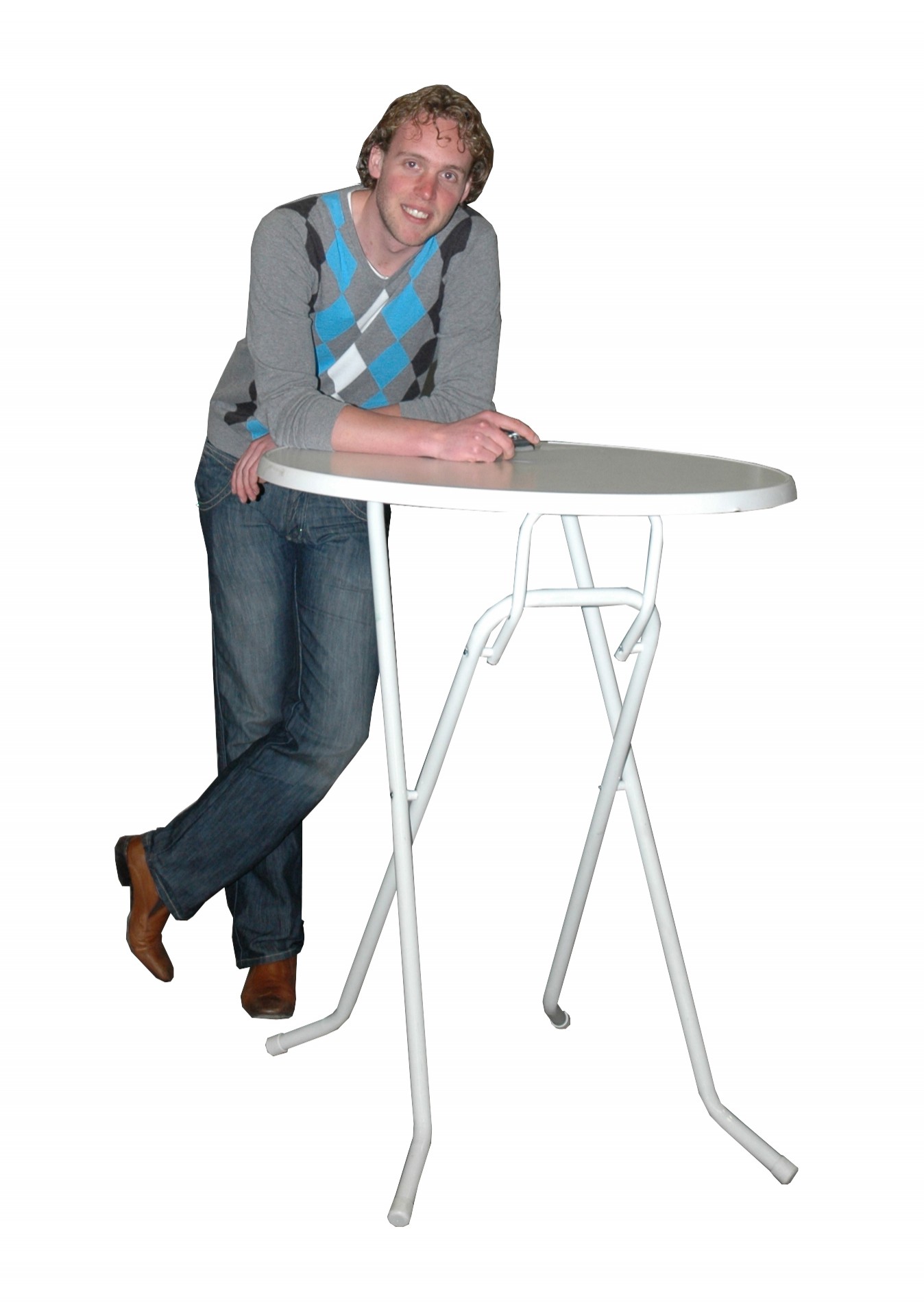 Een chique statafel met marmerprint.