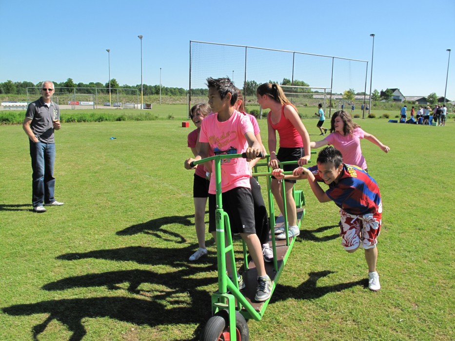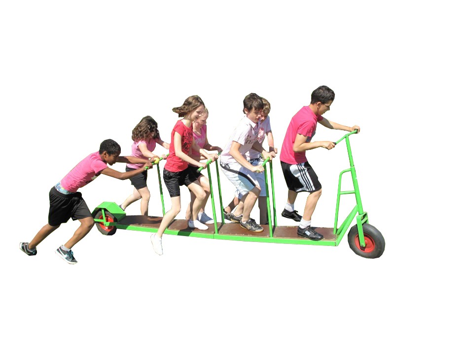 Deze 7 persoons step is een leuke attractie. Door middel van goede samenwerking wordt er geprobeerd om de step in beweging te krijgen.