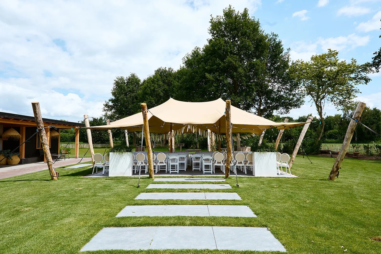 Onze tenten zijn gemaakt van duurzame materialen en zijn ontworpen om bestand te zijn tegen alle weersomstandigheden. Ze zijn waterdicht en brandvertragend, zodat je altijd kunt rekenen op een veilige en comfortabele omgeving voor jouw evenement.