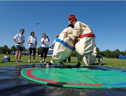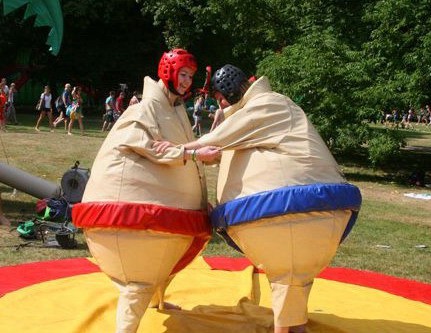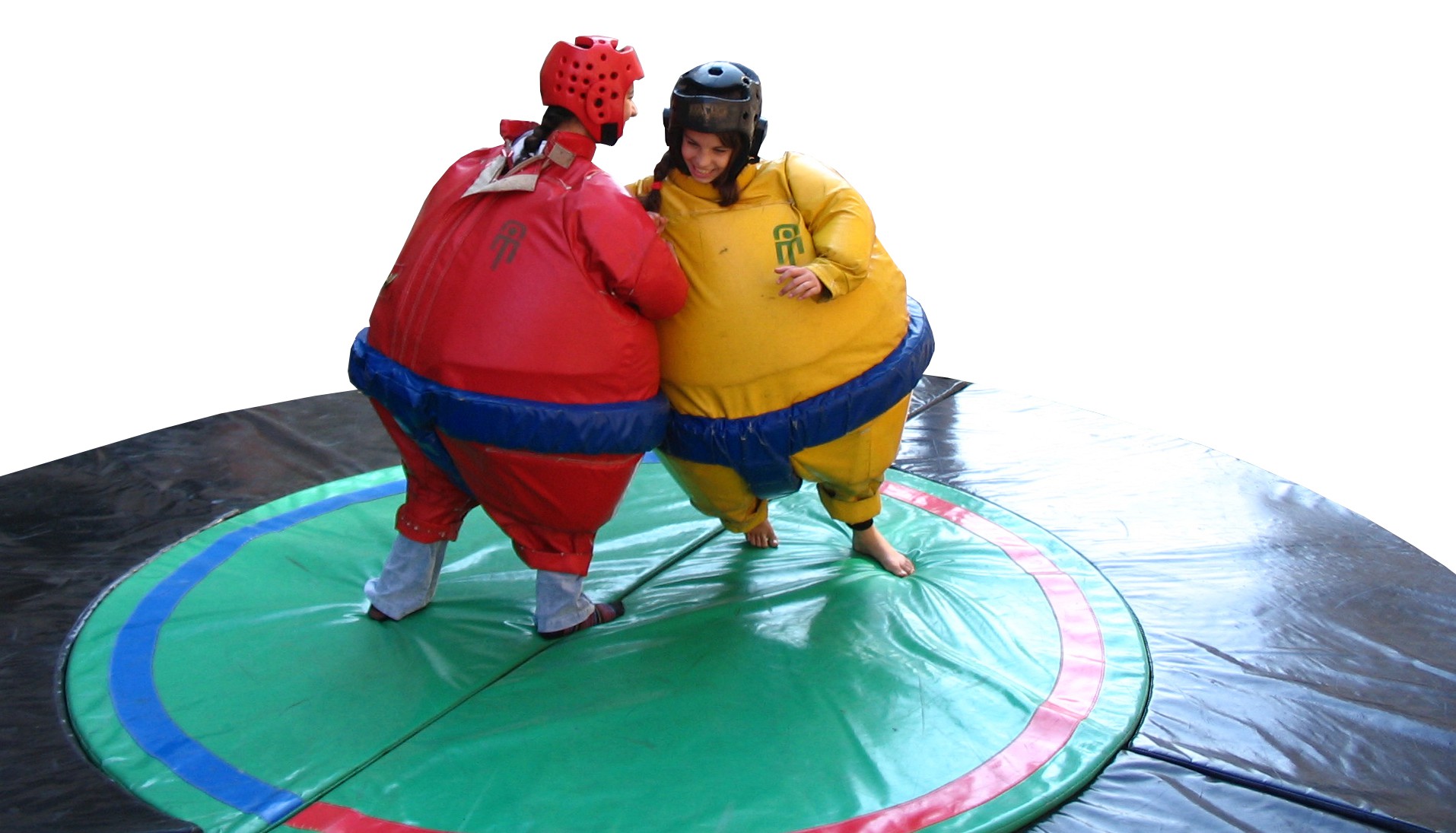 Gezellig en een grappig potje sumoworstelen met het hele gezin (2 volwassenenpakken en 2 kinderpakken).