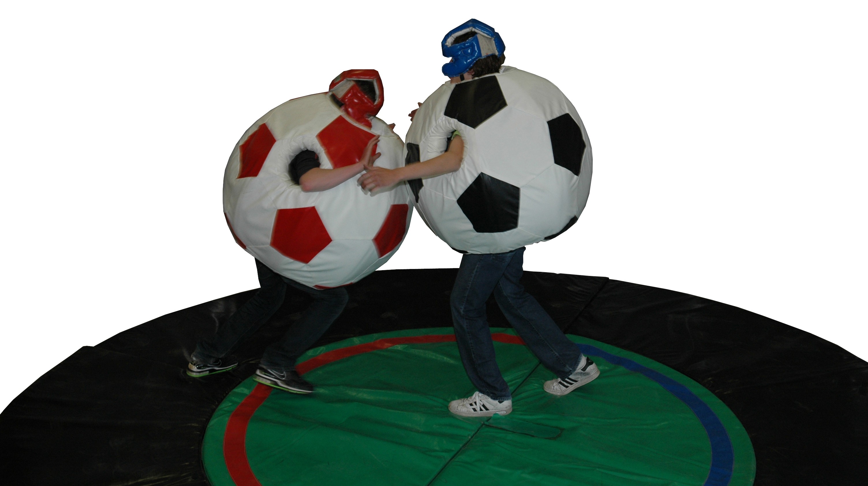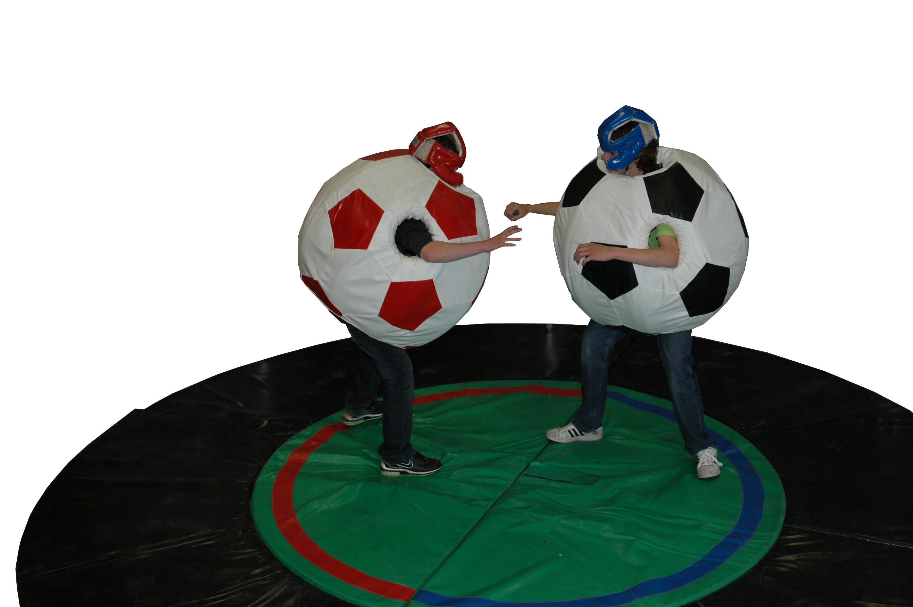 Gezellig en een grappig potje sumoworstelen in deze voetbal-sumoworstel pakken.
