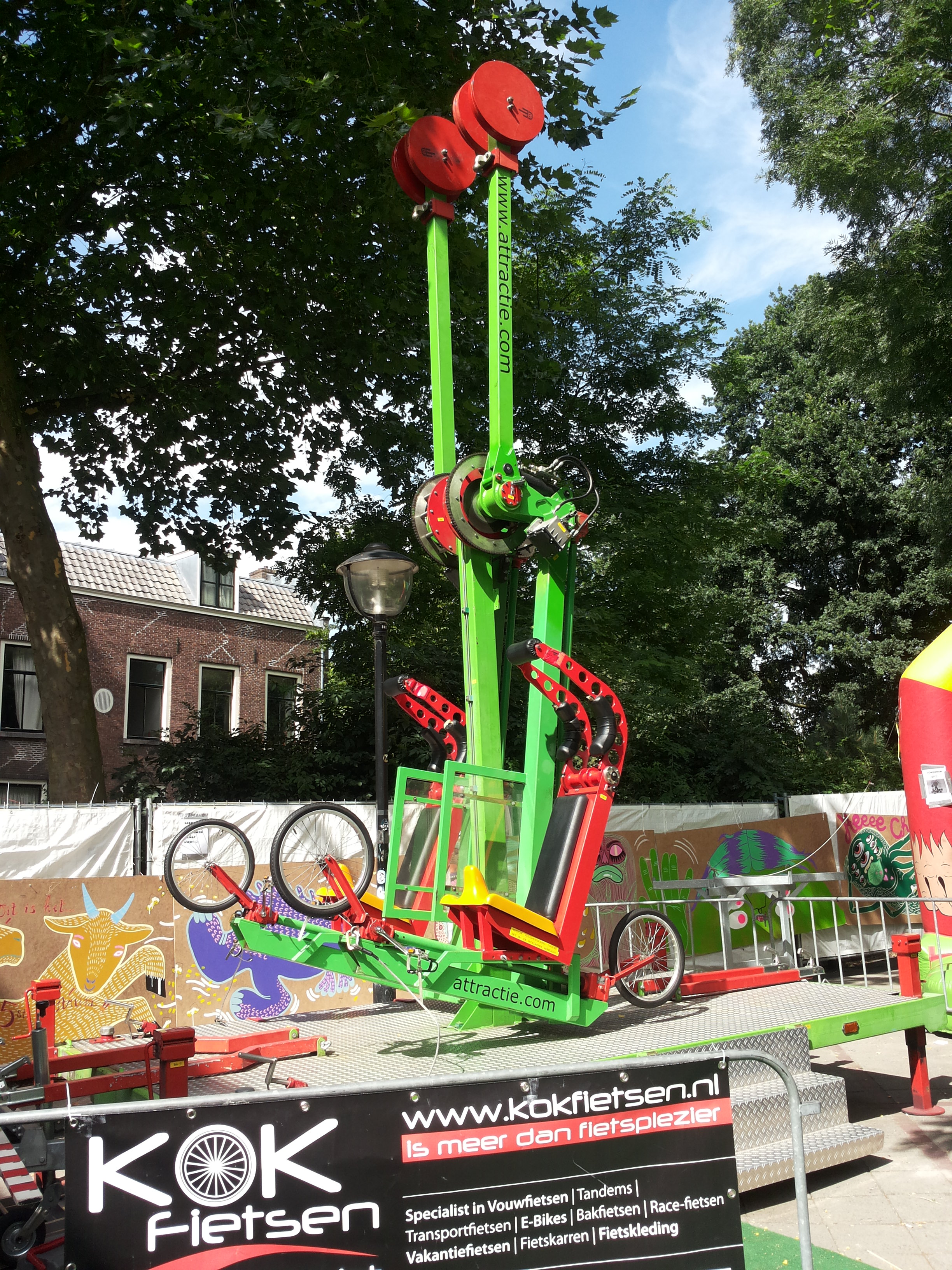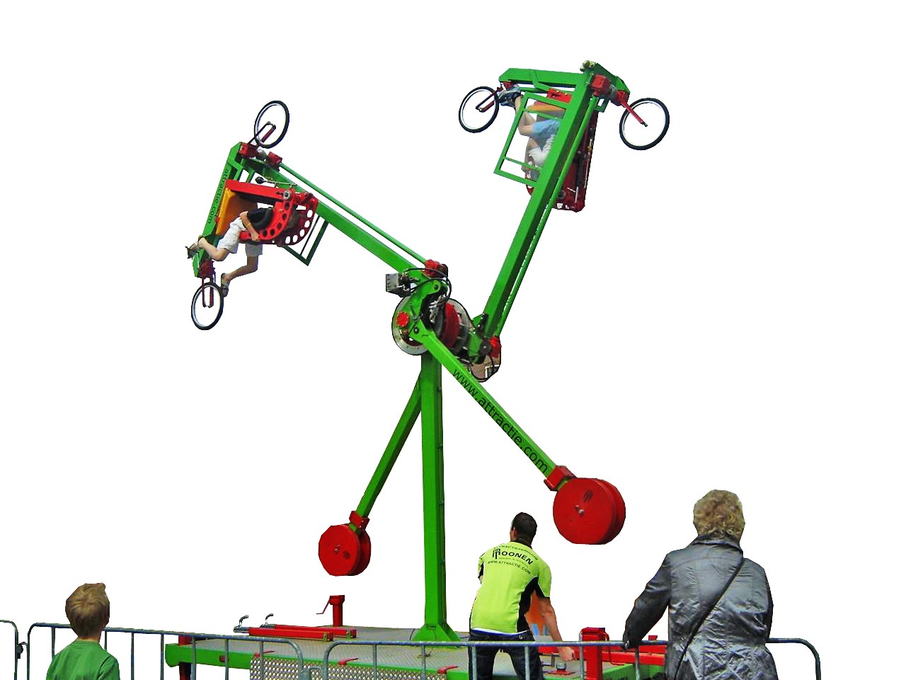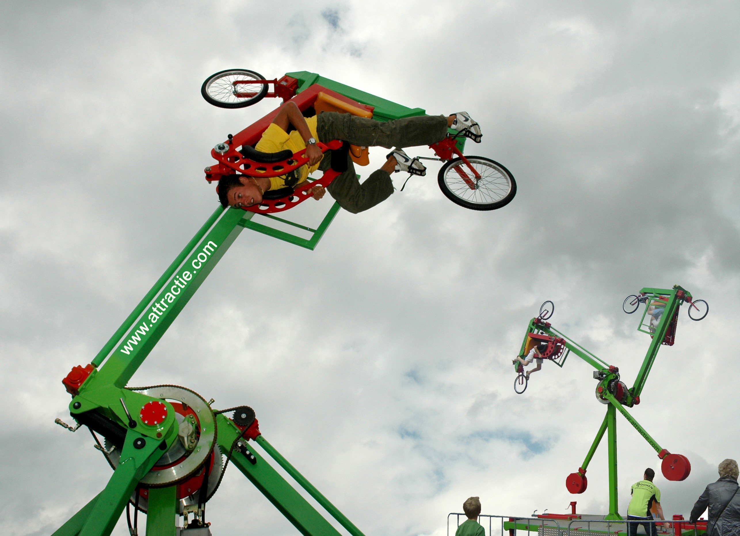 Dit is nog eens een fietstochtje! Fiets zo hard als je kunt en fiets jezelf letterlijk over de kop! Deze attractie biedt ruimte voor twee personen die tegelijk een ‘rondje’ kunnen fietsen. Wie maakt de meeste loopings? Een spectaculaire attractie, die vooral voor de gewaagden onder ons geschikt is. De activiteit wordt door onze mensen begeleid.