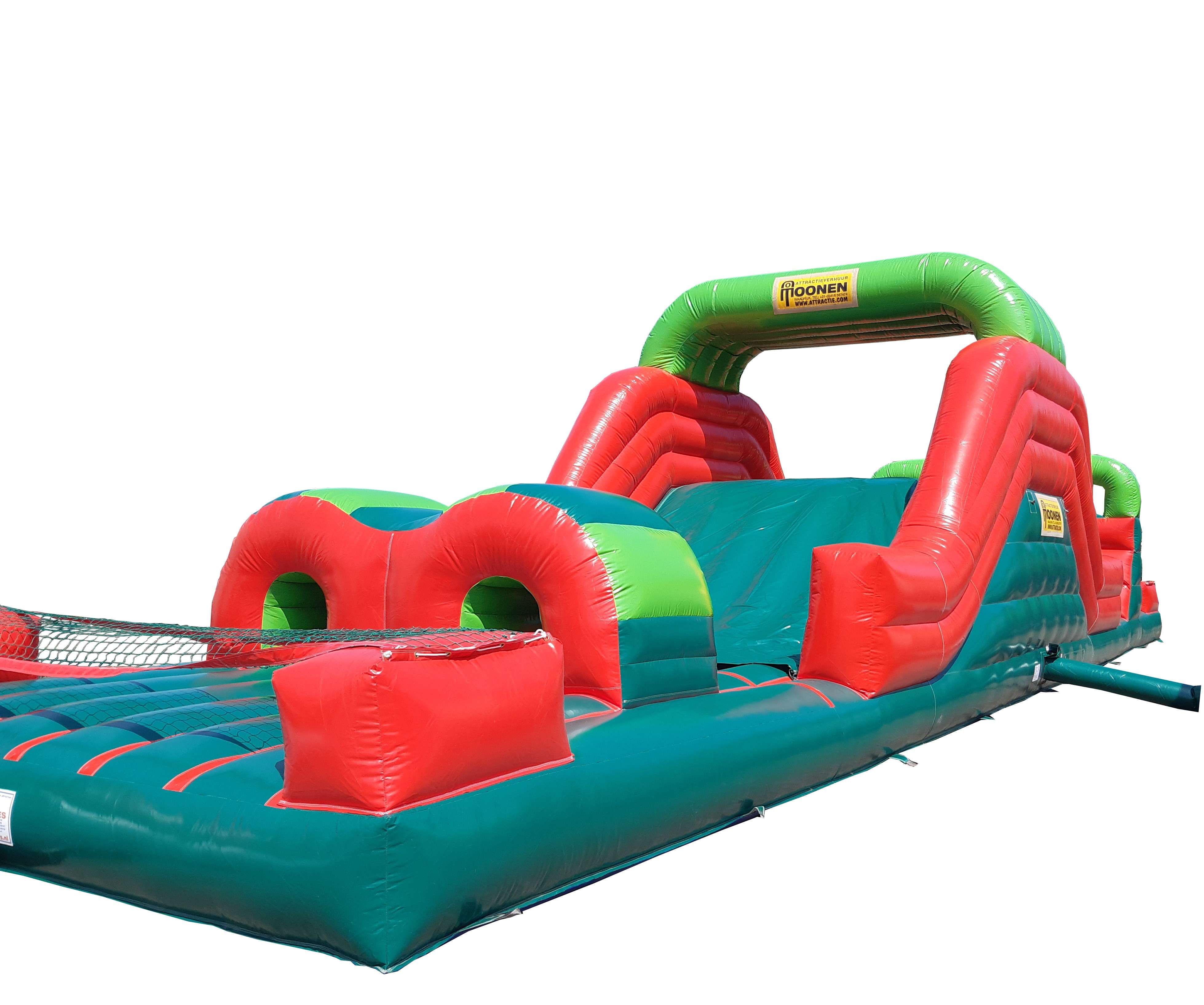 Deze extra grote survivalbaan brengt spanning en actie naar ieder evenement! De baan heeft verschillende obstakels die overwonnen moeten worden om het einde te kunnen bereiken. De ruime baan biedt plaats voor 2 deelnemers tegelijk. Ga dus met elkaar de strijd aan om te zien wie het snelste is! Dus bent u op zoek naar een spectaculaire attractie die plezier biedt aan jong en oud? Dan is deze survivalbaan een juiste keuze!