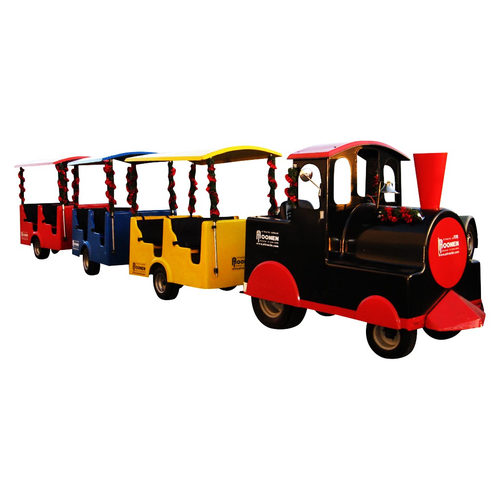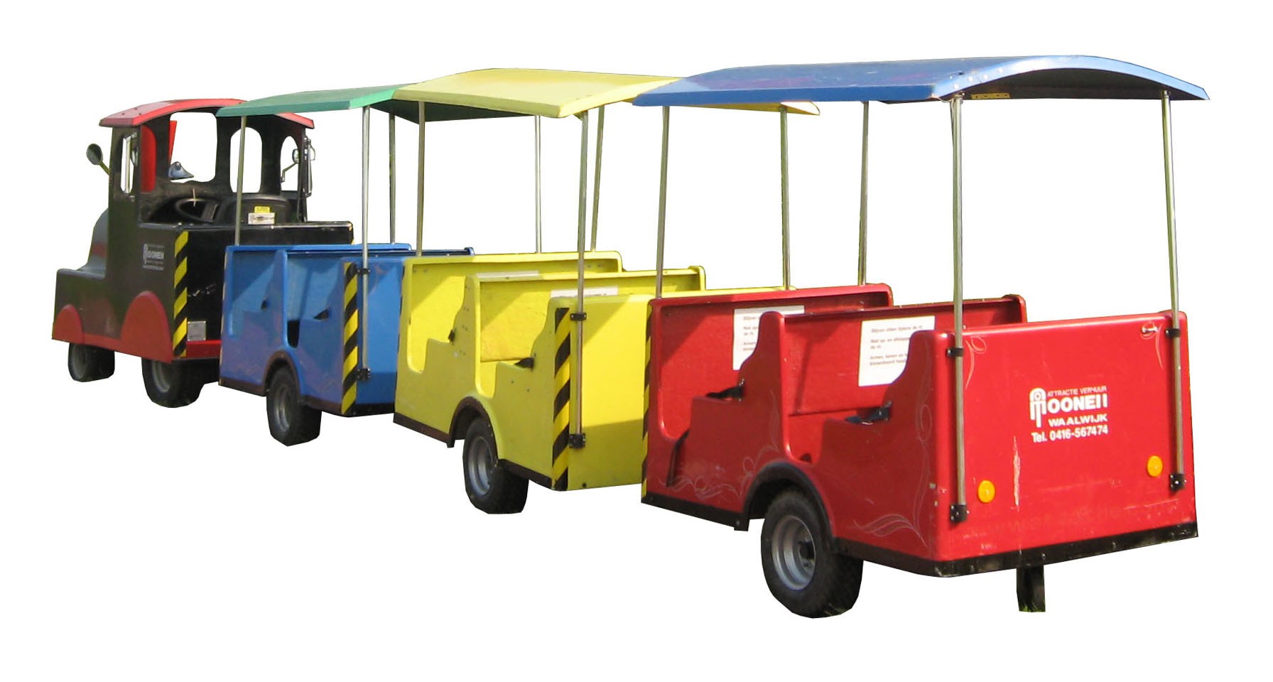 Dit leuke treintje van attractieverhuur Moonen beleef je een leuke rit. Met 3 wagonnetjes (16 zitplaatsen) is er genoeg plaats om een ritje mee te mogen maken.