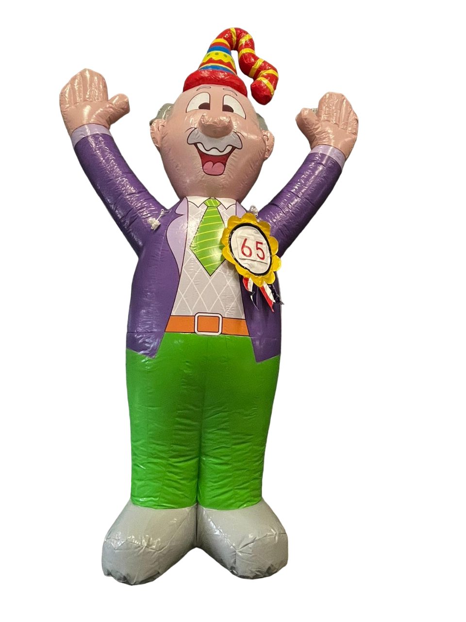 De perfecte feest inflatable als iemand 65 jaar wordt. Zet de jarige in het zonnetje met deze mooie feest pop, of het nu voor het huis of in de tuin is. De pop is gemakkelijk op te zetten.