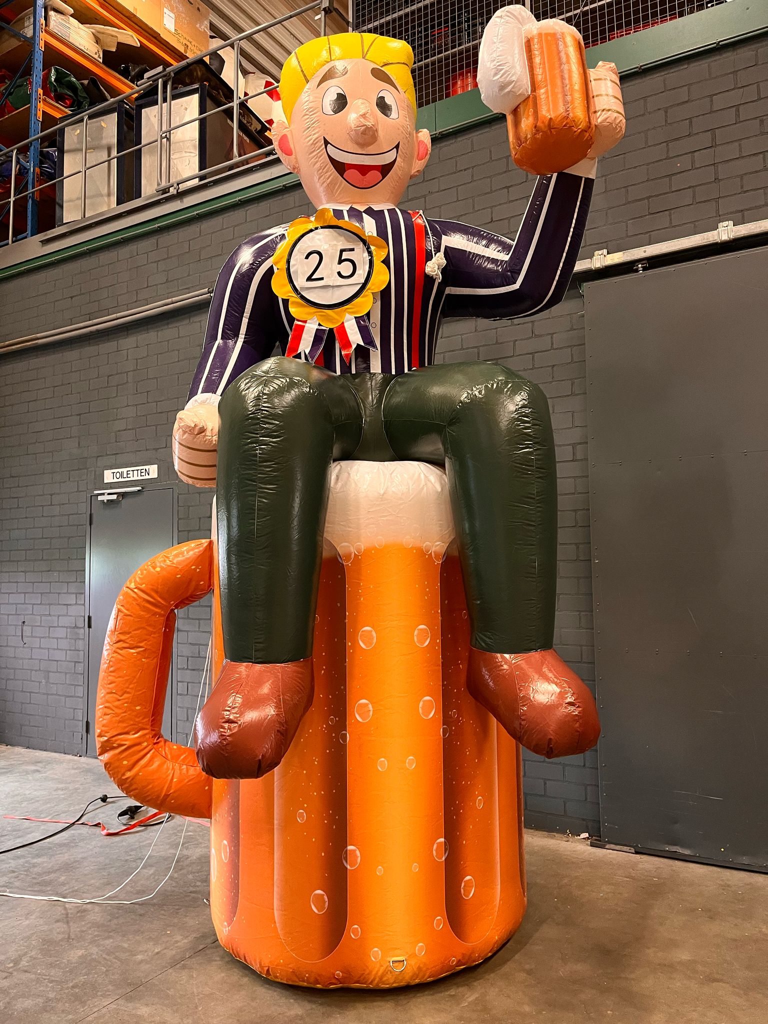 Hoera, de jarige wordt 25 jaar! Dat moet gevierd worden met een hilarische en opvallende decoratie. Deze opblaasbare pop van een man op een bierglas is dé ultieme blikvanger voor het feest!
