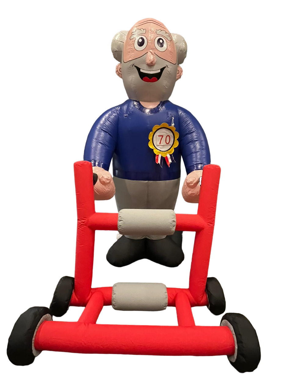 Deze verjaardagspop man met rollator is de ideale inflatable mocht u iemand die 70 wordt, op een ludieke manier in het zonnetje willen zetten. De inflatable is zeer gemakkelijk op te zetten.