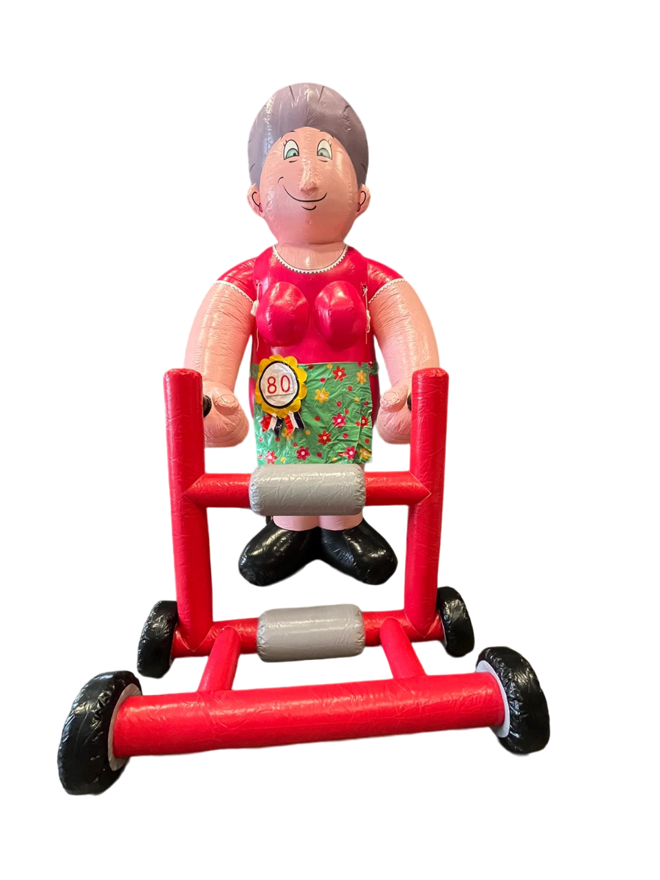 Deze verjaardagspop met rollator is de ideale inflatable mocht u iemand die 80 wordt, op een ludieke manier in het zonnetje willen zetten. De inflatable is zeer gemakkelijk op te zetten.