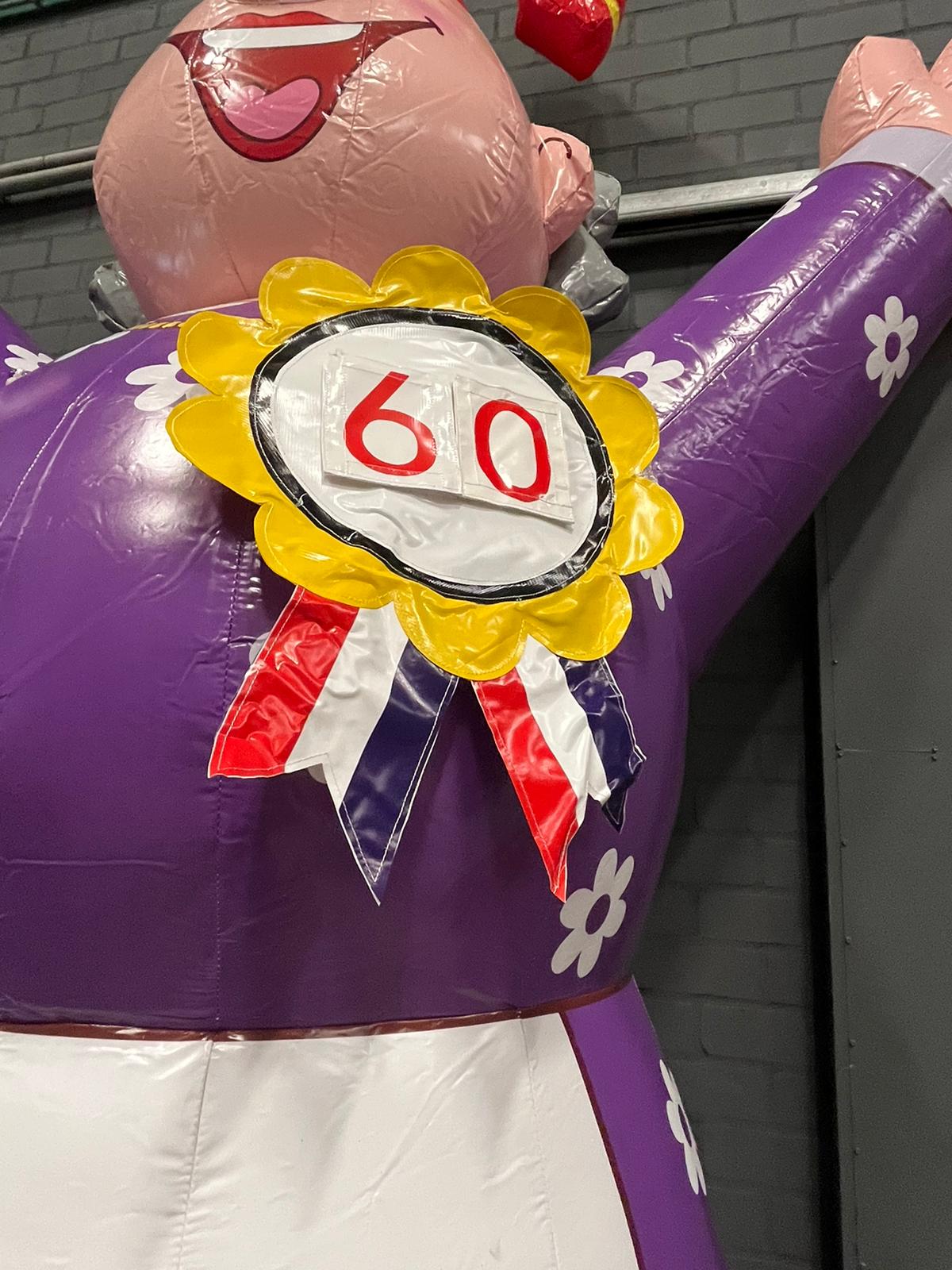 De perfecte feest inflatable als iemand 60 jaar wordt. Zet de jarige in het zonnetje met deze mooie feest pop, of het nu voor het huis of in de tuin is. De pop is gemakkelijk op te zetten.
