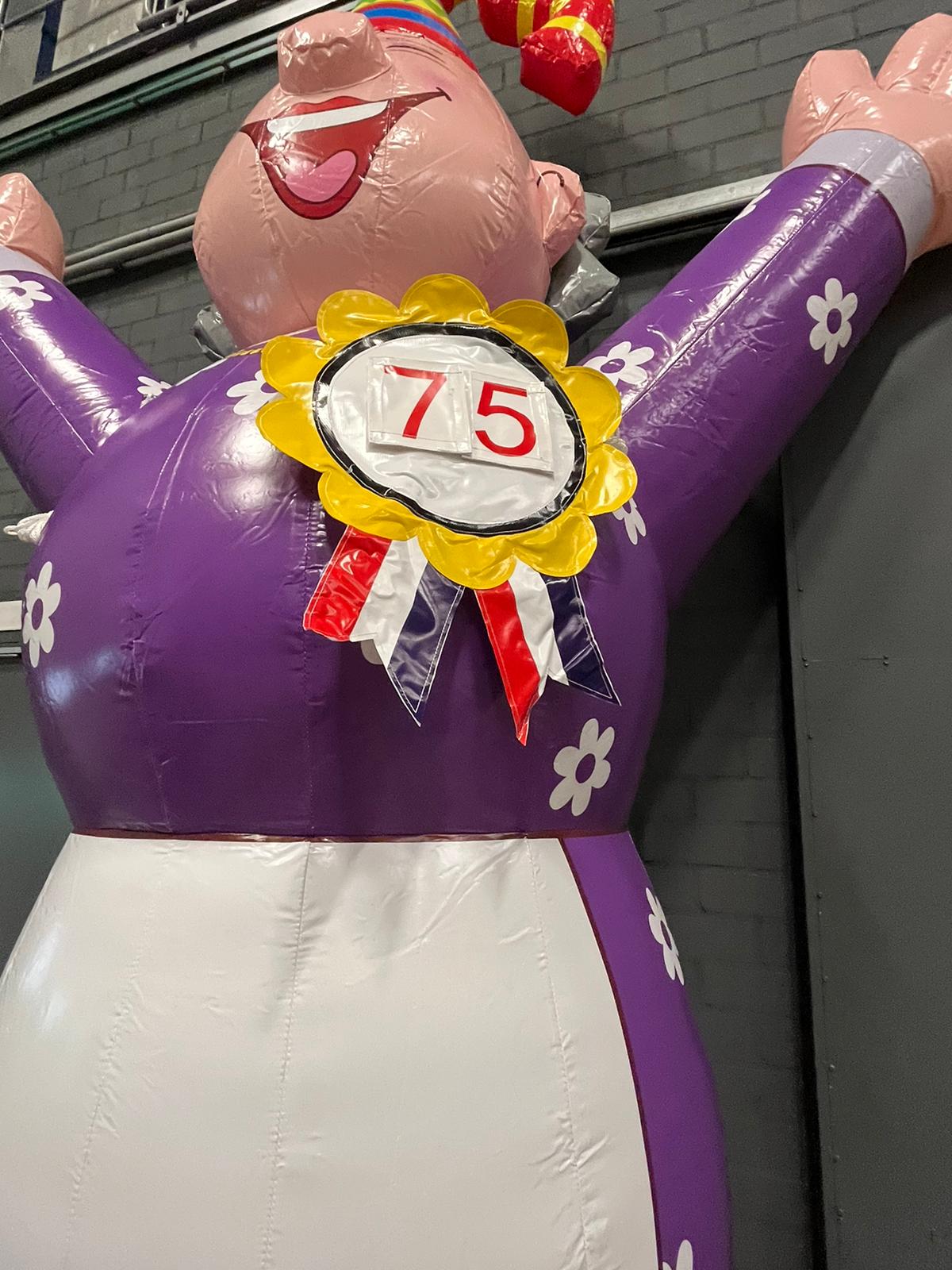 De perfecte feest inflatable als iemand 75 jaar wordt. Zet de jarige in het zonnetje met deze mooie feest pop, of het nu voor het huis of in de tuin is. De pop is gemakkelijk op te zetten.