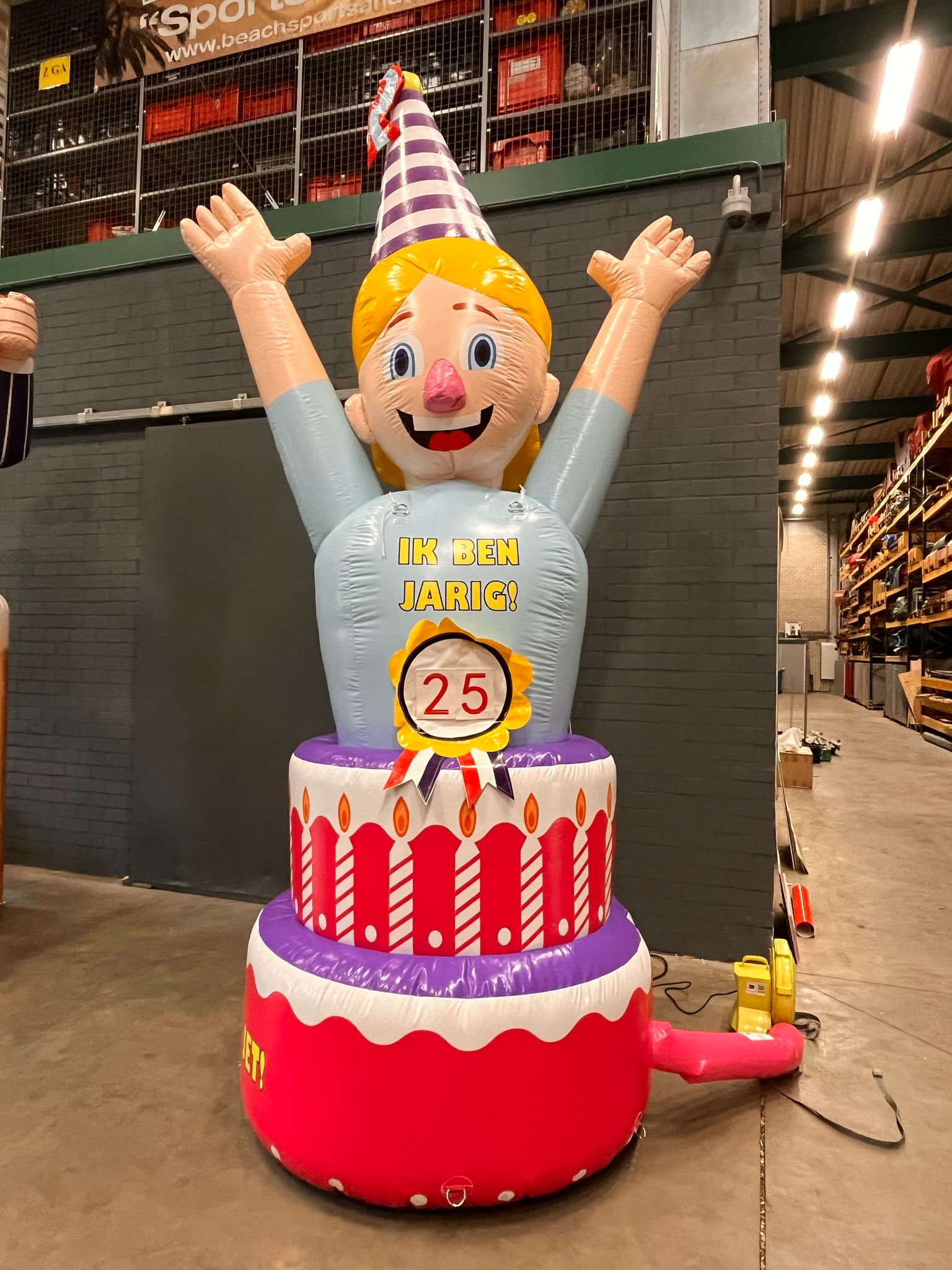 Dat moet natuurlijk groots gevierd worden, en wat is een beter cadeau dan deze opvallende opblaasbare pop van een feestelijke vrouw met taart? Dé perfecte verrassing voor een onvergetelijke verjaardag!