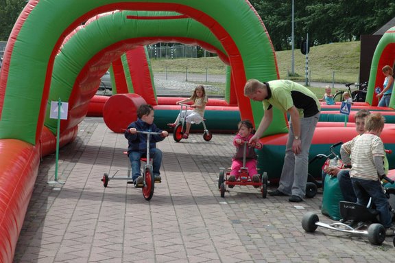 In deze leuke verkeerstuin kunnen kinderen leren hoe het verkeer in elkaar zit. Wanneer mag ik doorrijden bij en stoplicht en wat betekent dat ene bord ook alweer? Urenlang speelplezier dus!