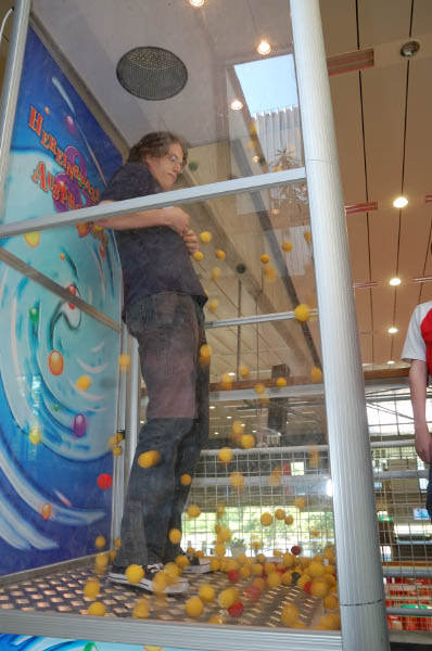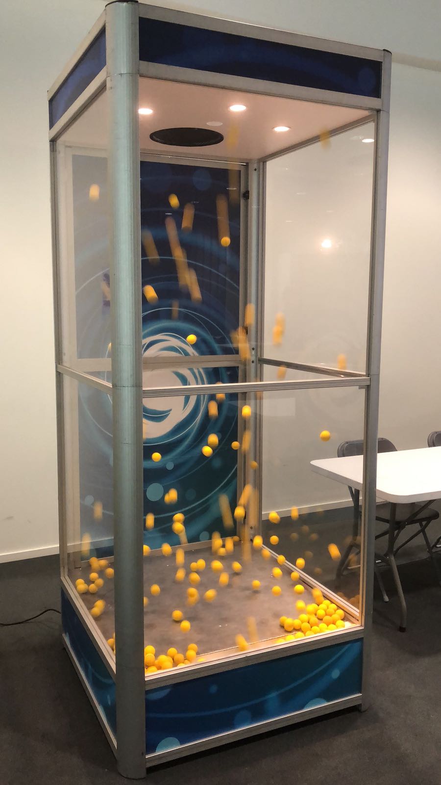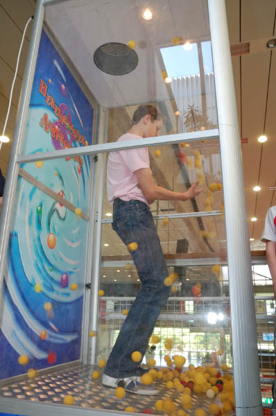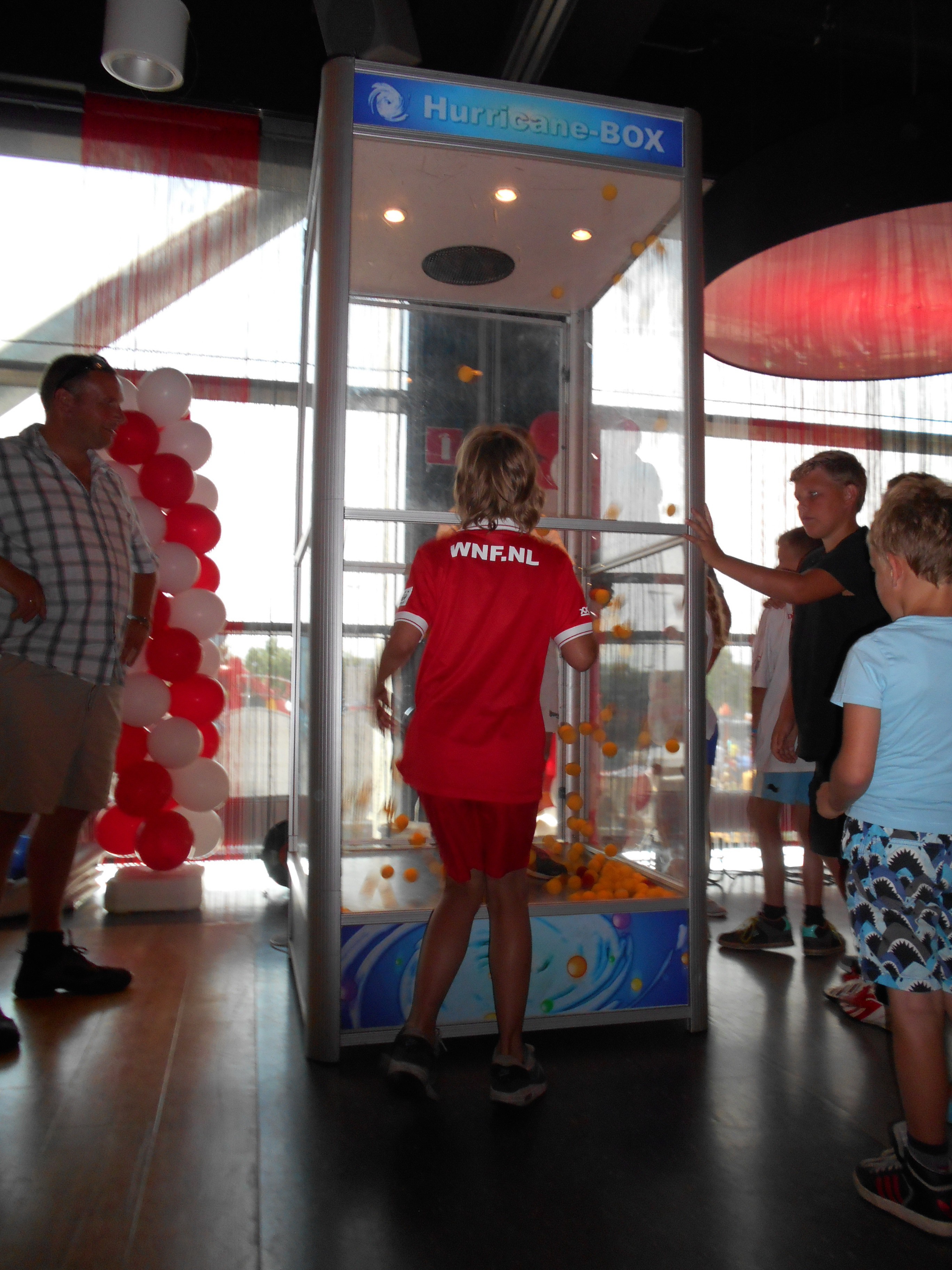 Ga in de wervelwind staan en probeer de vliegende balletjes te vangen. Wie vangt de meeste balletjes?
