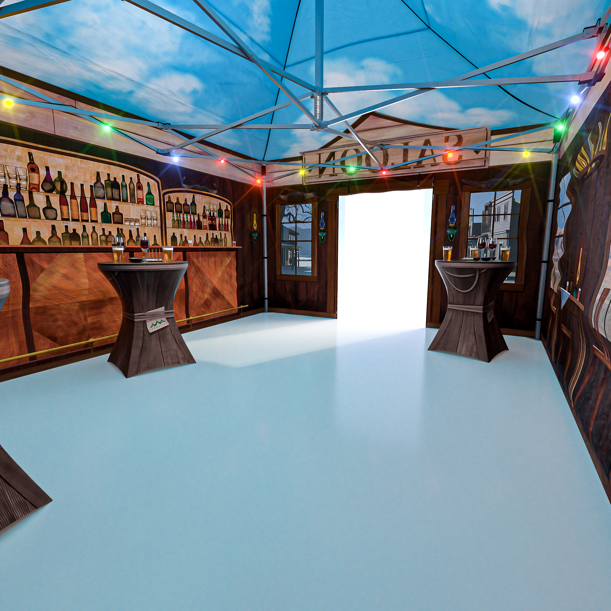 de binnenverlichting en statafels zijn niet inbegrepen, maar kunnen worden toegevoegd voor een meerprijs van €100,- ex btw. Geef bij uw bestelling aan dat u hier gebruik van wilt maken en creëer hiermee een nog completere feestervaring!