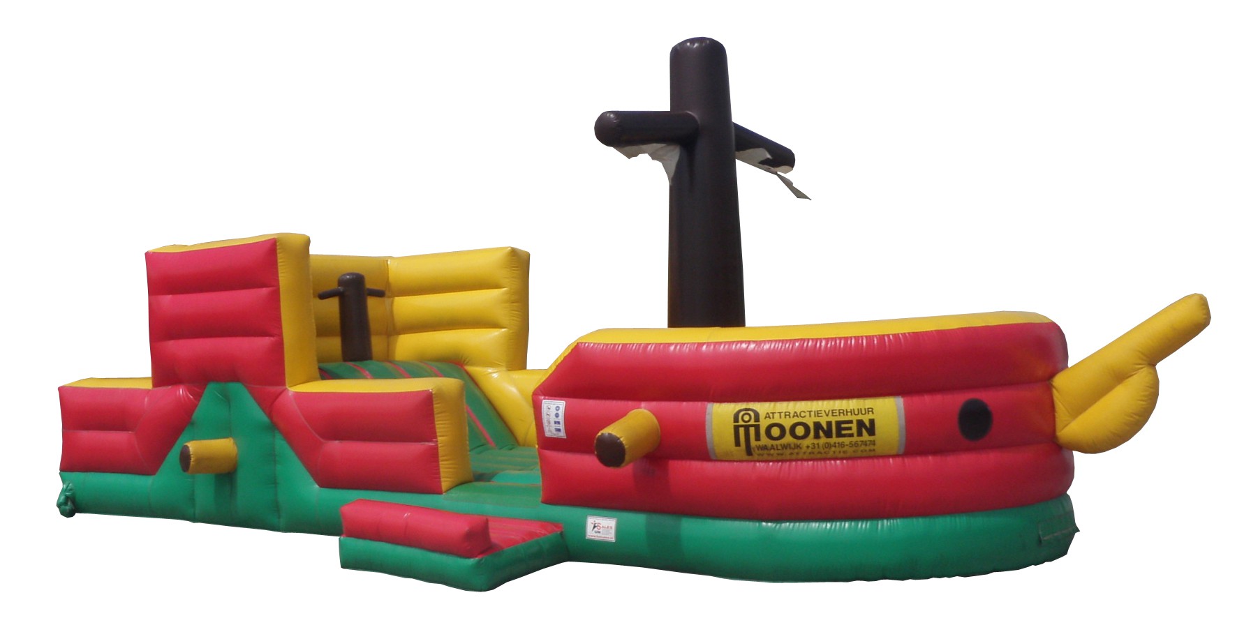 Dit enorme piratenschip biedt plaats voor veel avontuurlijke piraatjes. Betreed het schip via een van de ingangen, hijs de zeilen en vaar over de 7 zeeën! Dit luchtkussen valt erg op door zijn grootte en maakt ieder evenement compleet. Dus bent u opzoek naar een groot en mooi luchtkussen met een piratenthema? Dan is dit kussen zeker een aanrader.