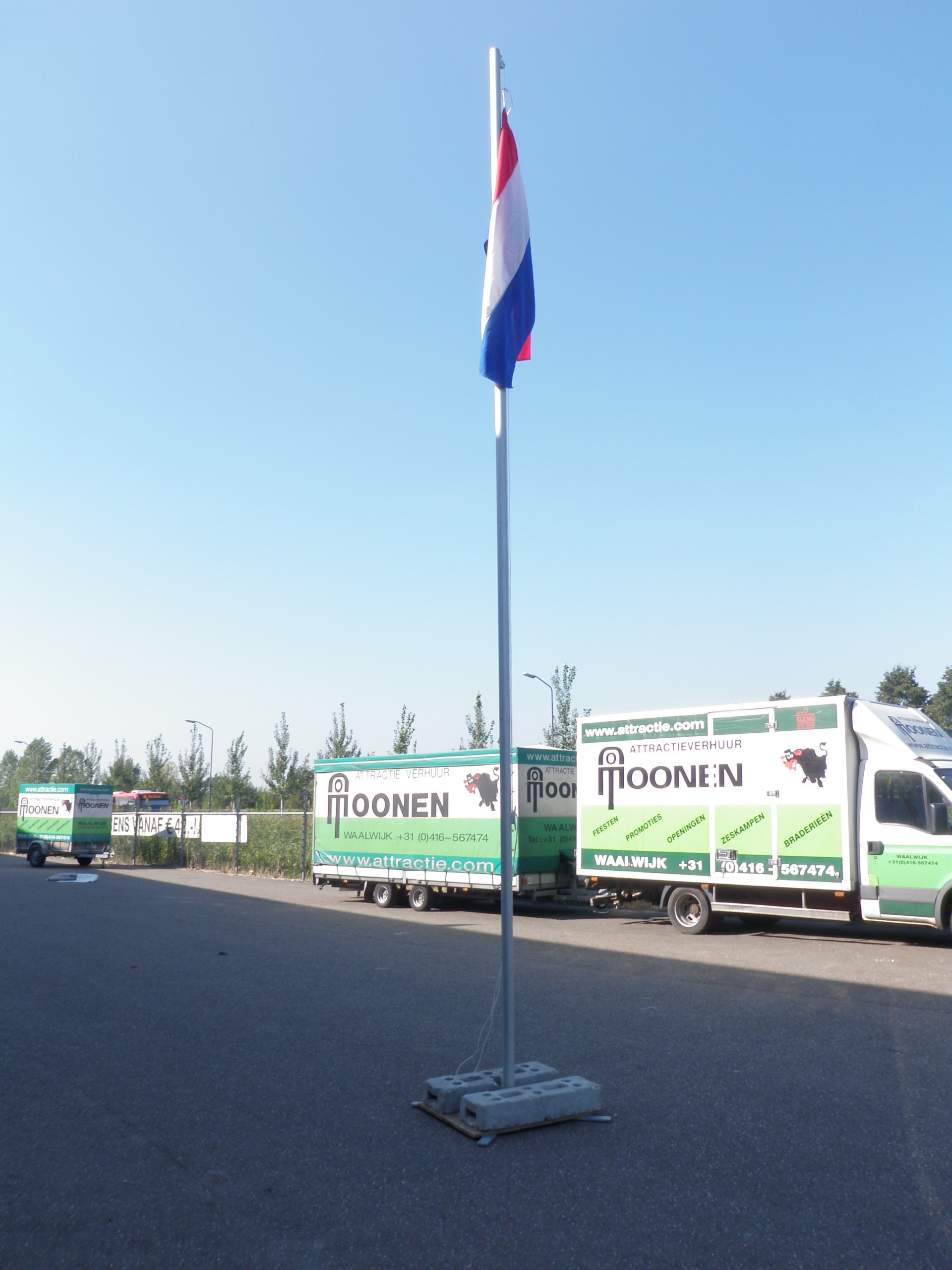 Een verplaatsbare vlaggenmast voor uw (reclame) vlag. Wordt geleverd zonder vlag, welke uiteraard wel bij ons te huren is!