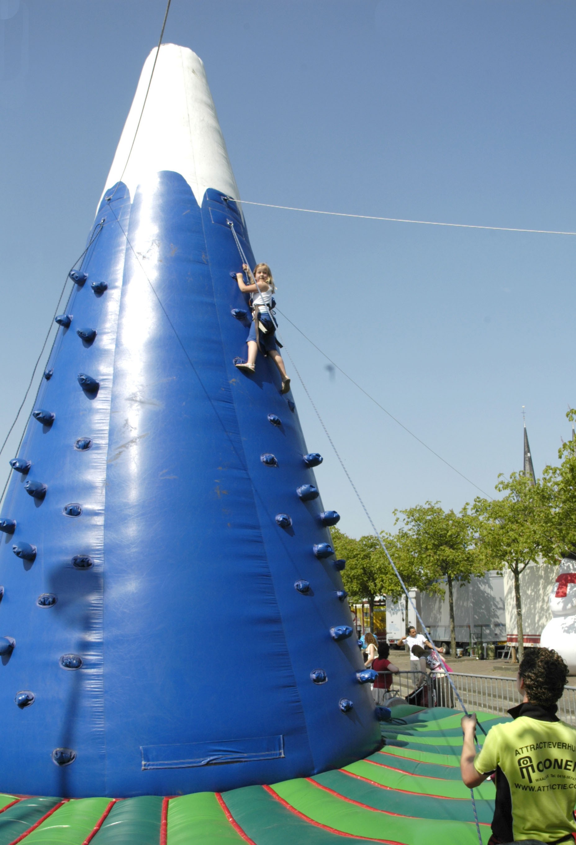 Houd jij ook zo van klimmen en klauteren en ben je niet bang voor grote hoogtes? Dan is deze ijsberg echt iets voor jou. Bij deze klimberg kan er met 4 man tegelijk geklommen worden en doormiddel van het uitstekende zekering systeem wat wij er bij leveren kan er nooit hard gevallen worden. Doordat er met 4 man tegelijk geklommen kan worden kan deze attractie perfect gebruikt worden op een druk evenement. Door de 9 meter hoogte is deze attractie ook een echte eyecatcher. Hij valt van een verre afstand al op en levert veel bekijks op. Dus wil je laten zien dat je een echte klauteraar bent en wil je aan iedereen laten zien dat jij de top durft te bestormen? Huur dan snel deze attractie en maak uw evenement tot een gegarandeerd succes.