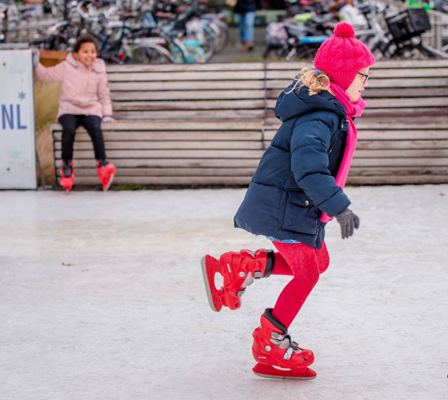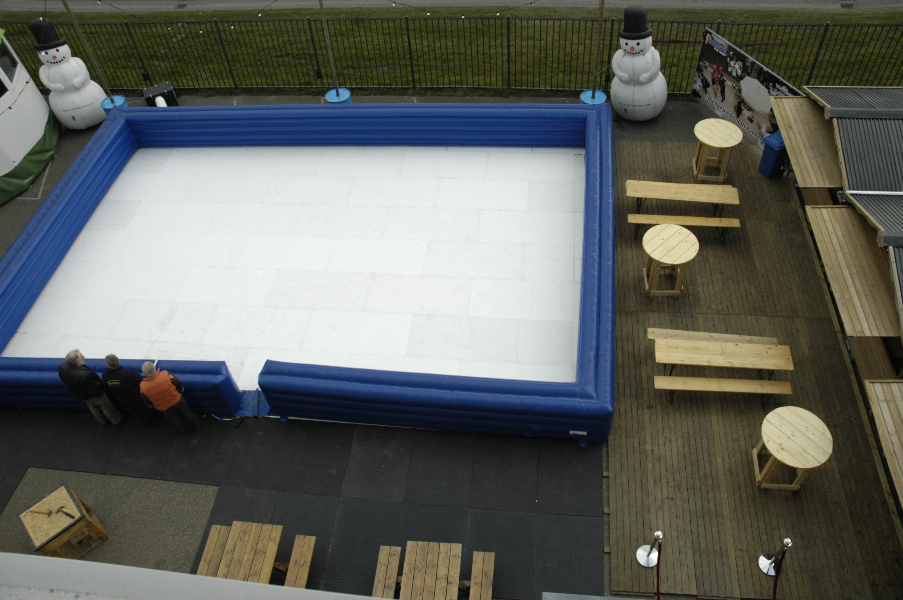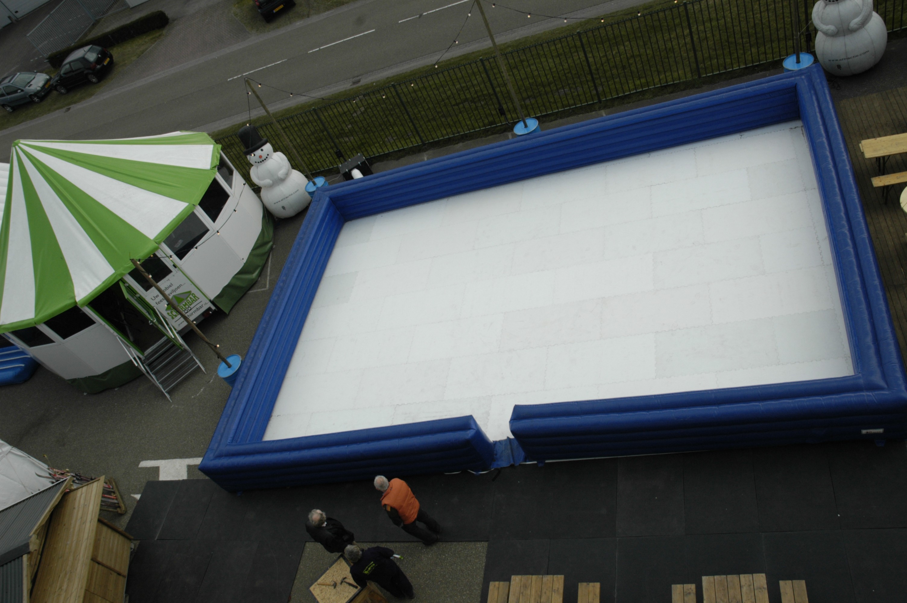 Wordt schaatsklaar geleverd, dus inclusief schaatsjes, gelegenheid om van schoenen/schaatsen te wisselen en een prachtige inflatable schaatsboarding.