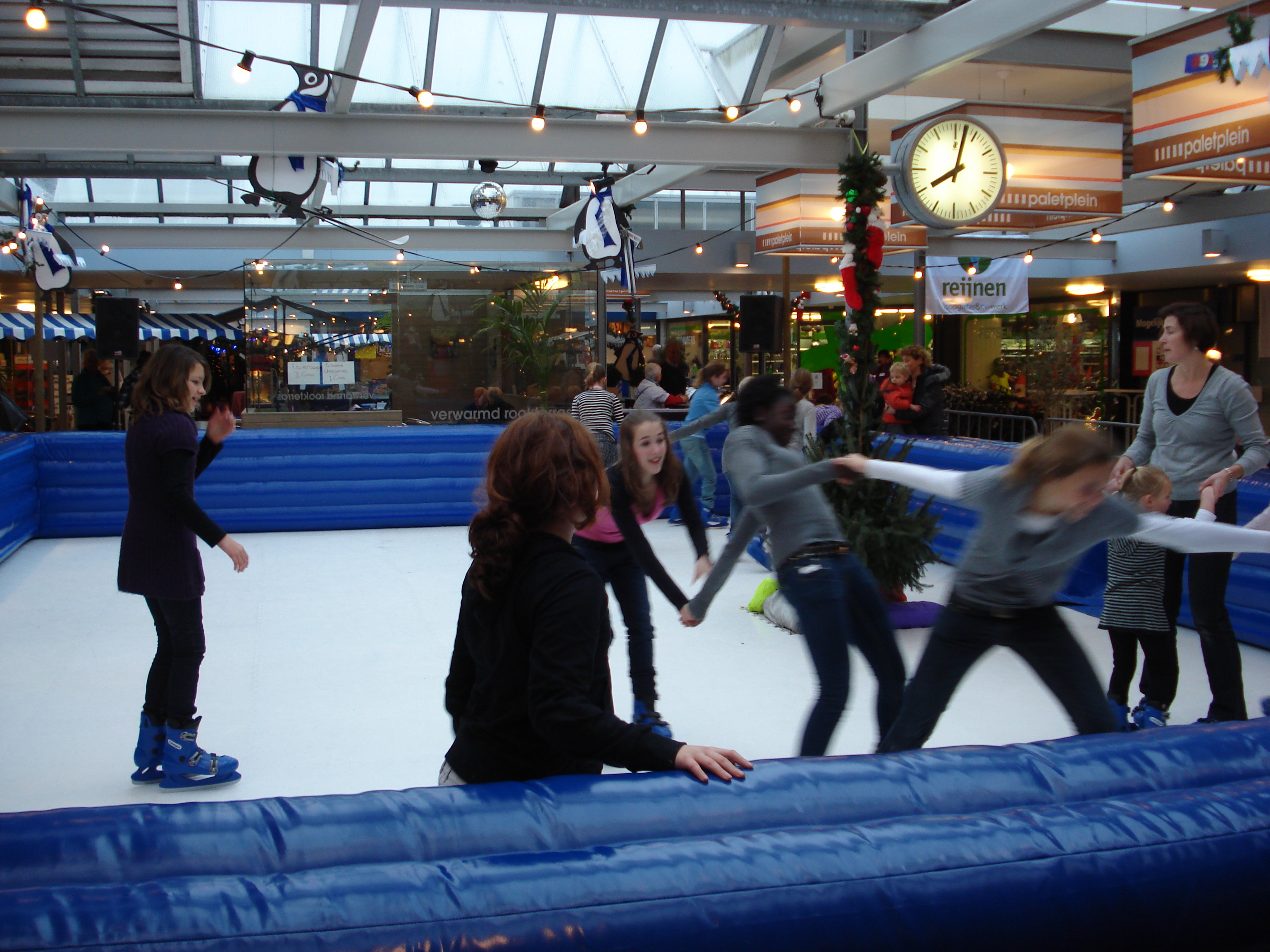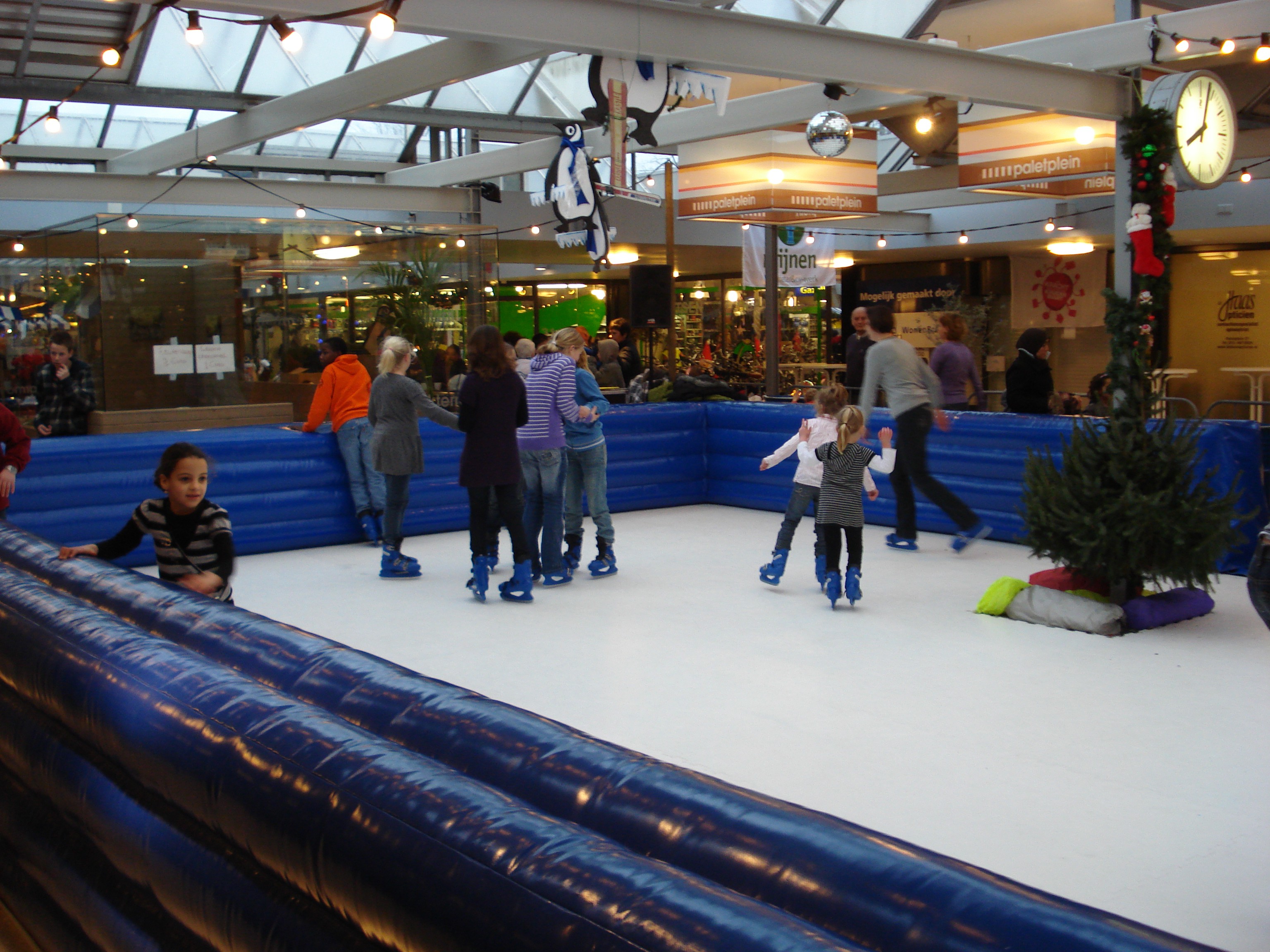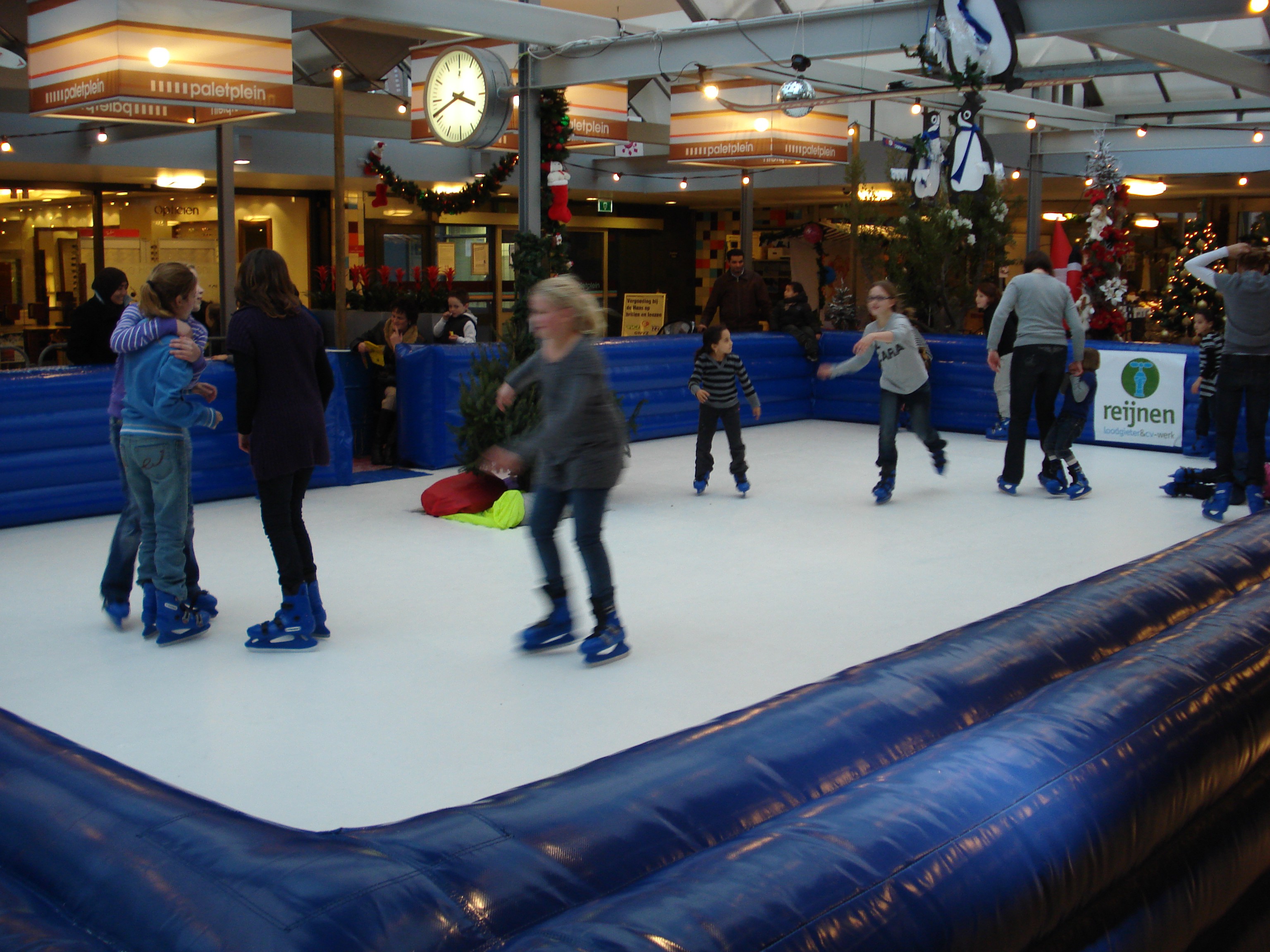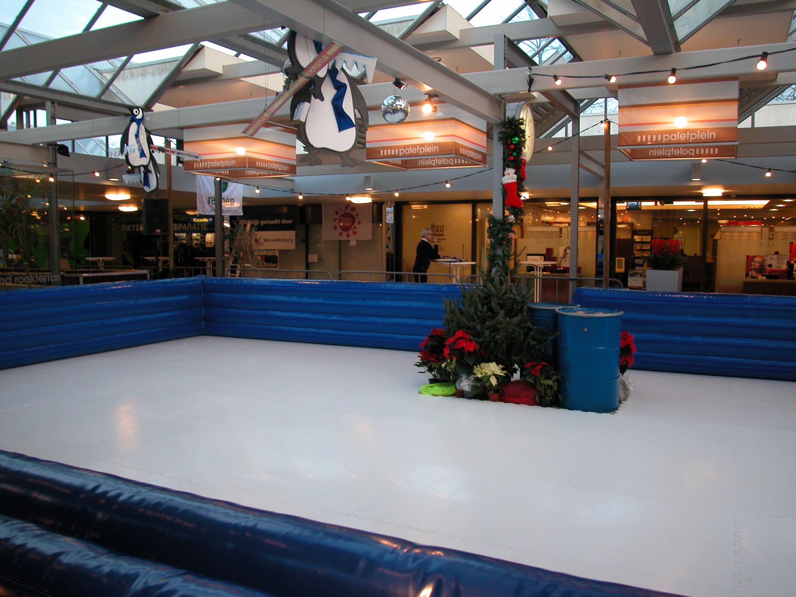 Wordt schaatsklaar geleverd, dus inclusief schaatsjes, gelegenheid om van schoenen/schaatsen te wisselen en een prachtige inflatable schaatsboarding.