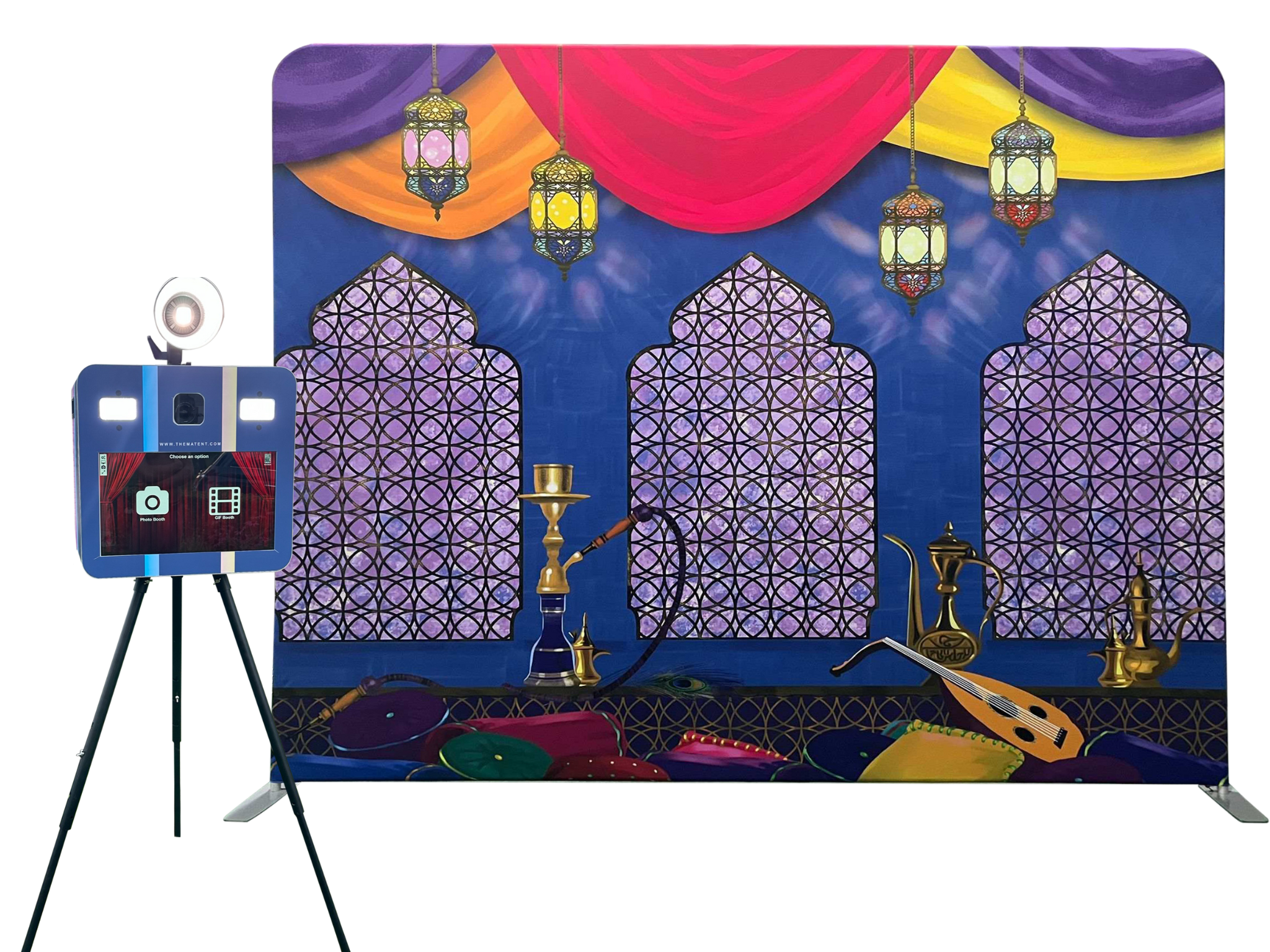 Deze Photobooth heeft een Arabische 1001 nachten foto-achtergrond voor de mooiste thematische foto's! De Photobooth wordt door ons opgebouwd en begeleid.3 uur begeleiding en onbeperkte prints is inbegrepen bij de prijs.