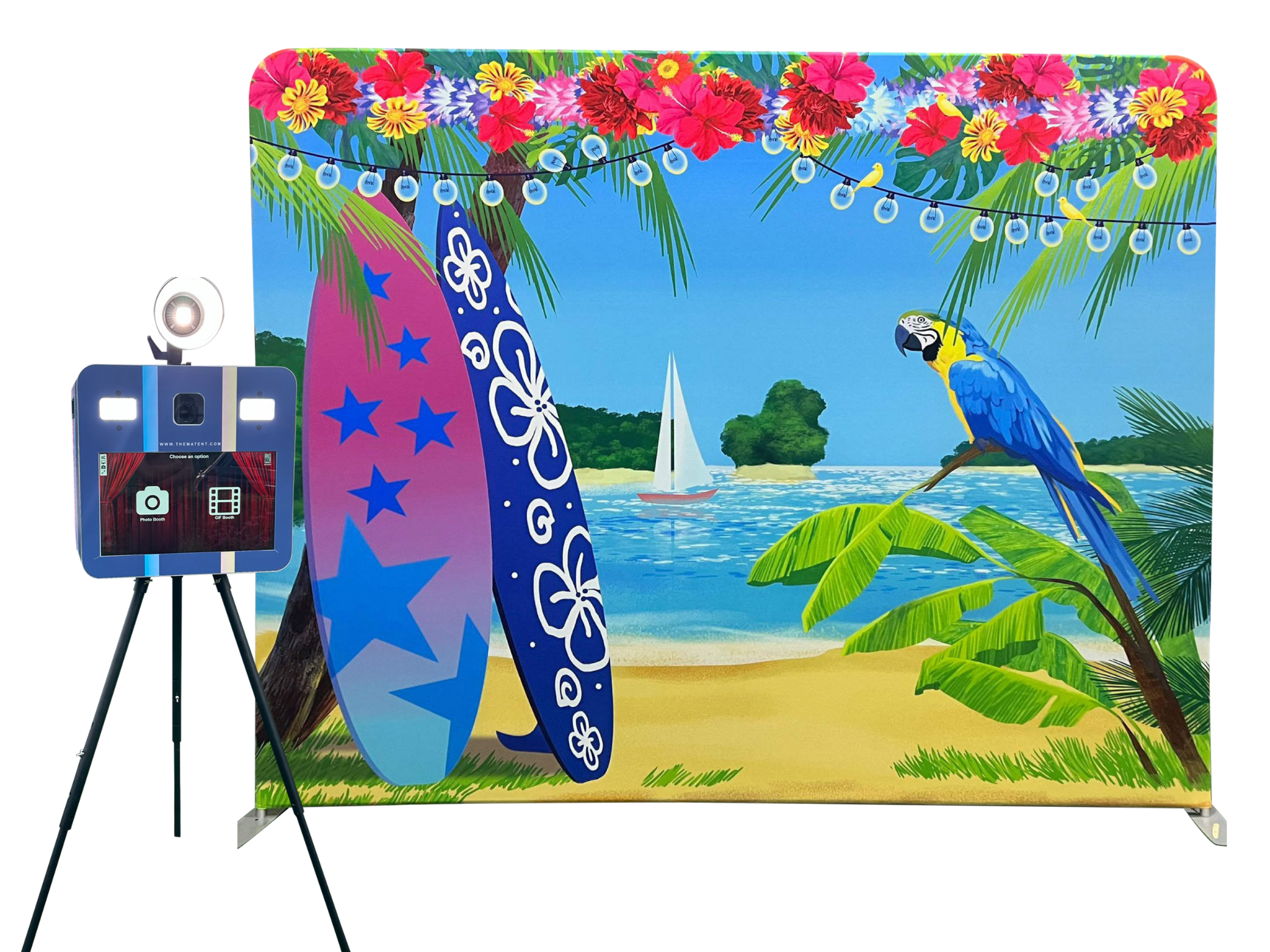 Deze Photobooth heeft een Caribisch palmenstrand als foto-achtergrond voor de mooiste zomerse foto's! De Photobooth wordt door ons opgebouwd en begeleid.3 uur begeleiding en onbeperkte prints is inbegrepen bij de prijs.