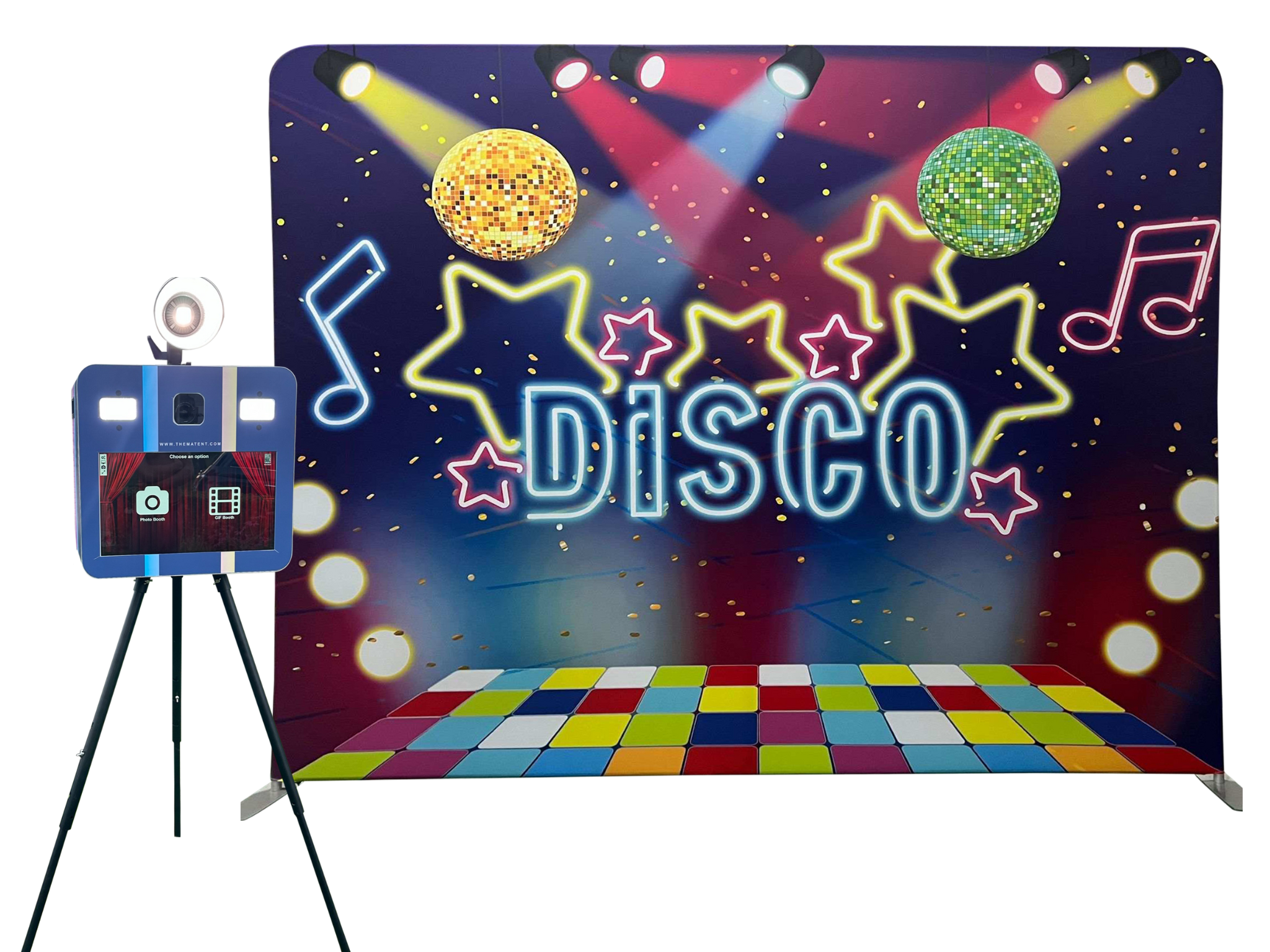Deze Photobooth heeft een Thema Disco foto-achtergrond voor de mooiste Disco foto's! De Photobooth wordt door ons opgebouwd en begeleid.3 uur begeleiding en onbeperkte prints is inbegrepen bij de prijs.