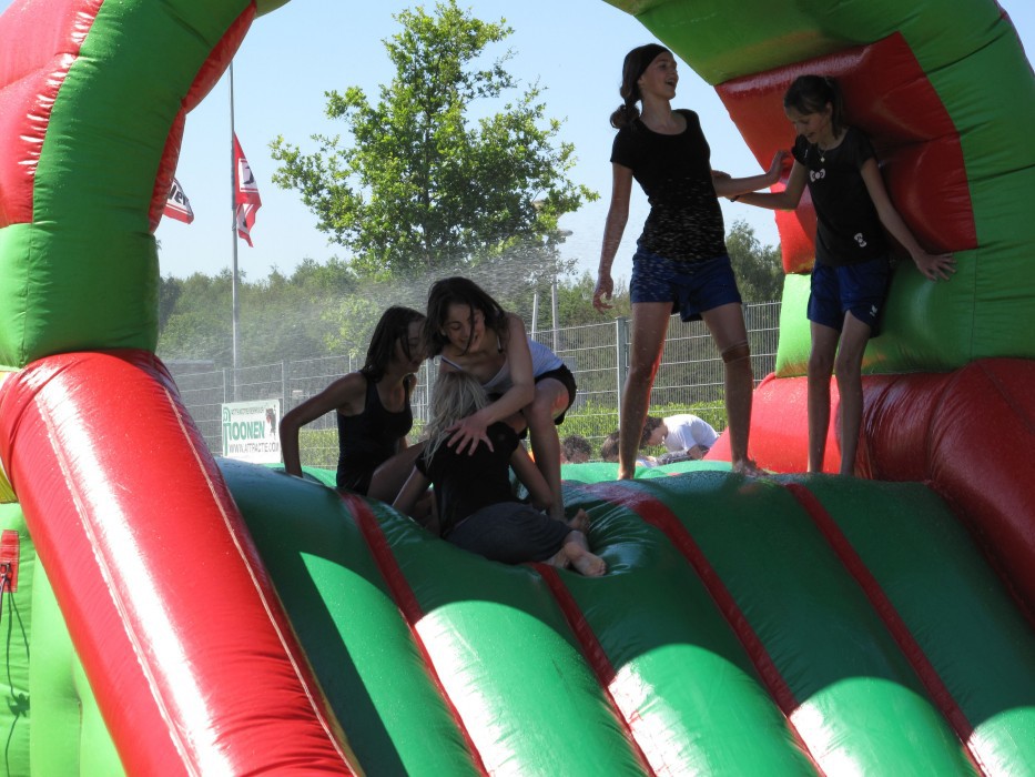 Een zeephelling. Natuurlijk onmisbaar voor ieder zeskamp of obstakelparcours. Maar ook is het natuurlijk te gebruiken als attractie op zich. Het kan prima zonder water gebruikt worden, maar in de warme zomerdagen is het natuurlijk heerlijk verfrissend om water en zeep te gebruiken. Ook zal dit de gladheid van de baan verbeteren waardoor er nog beter gegleden kan worden!