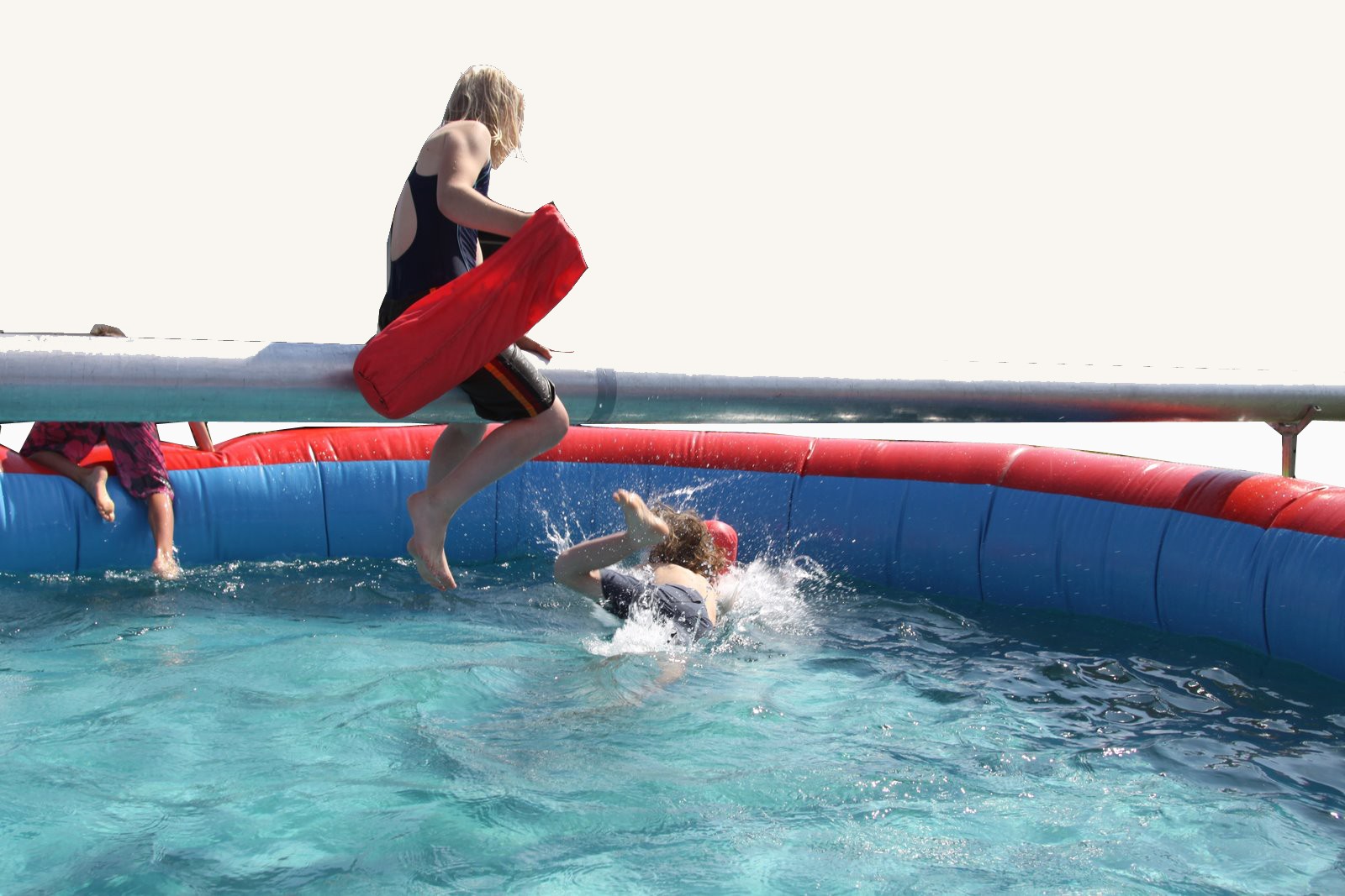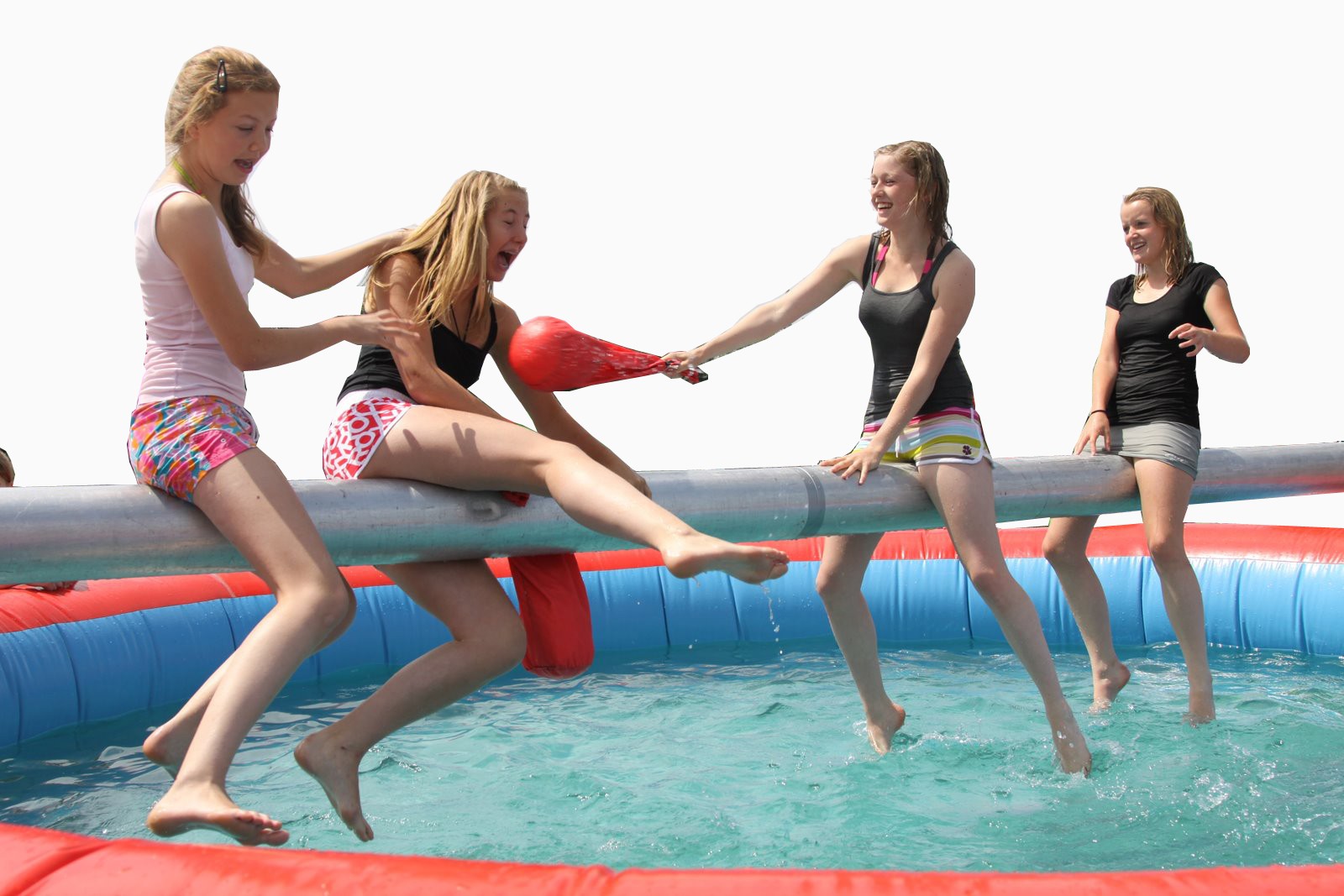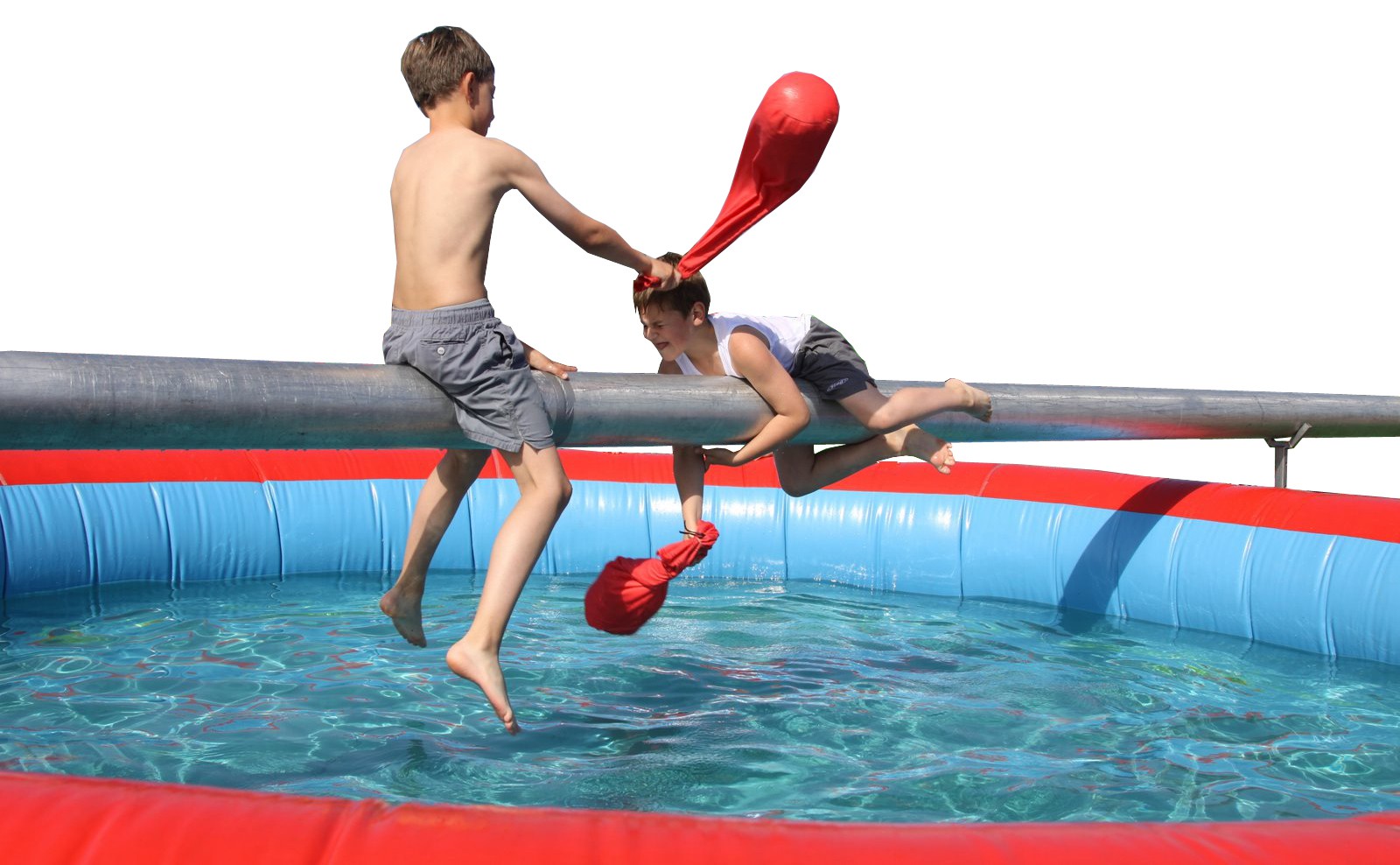 Heb jij een goed evenwicht? Test het op de evenwichtsbalk! Deze attractie kan gebruikt worden door 2 deelnemers tegelijk. De deelnemers klimmen de balk op, ieder aan een andere kant. Ongeveer in het midden zal je elkaar tegenkomen. Gebruik de zachte zakken om elkaar er af te slaan. Degene die als laatste blijft zitten wint het spel!