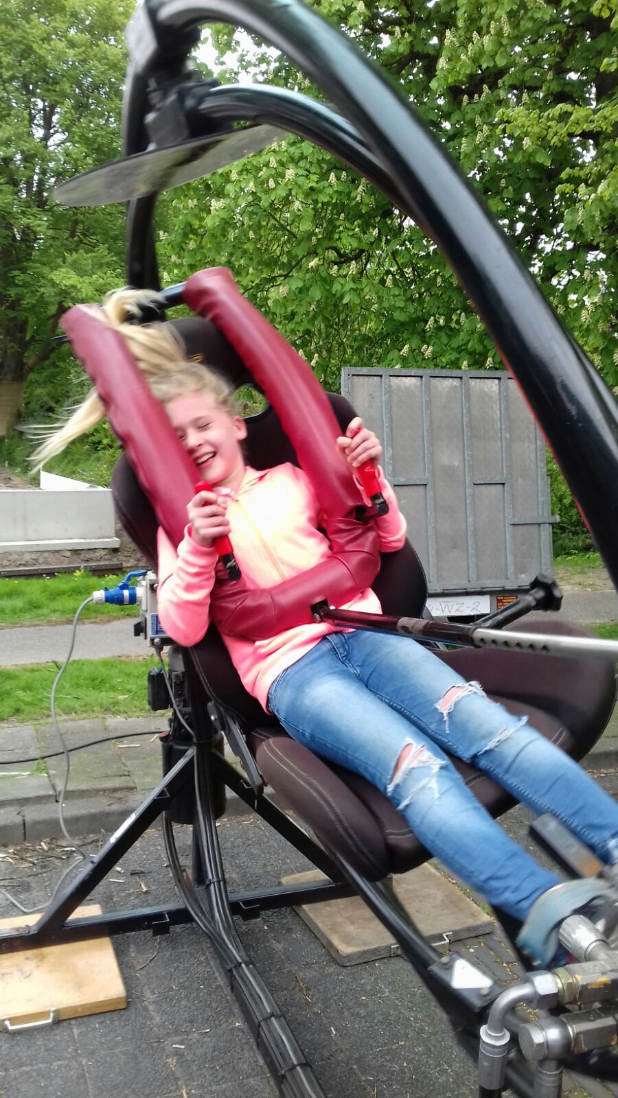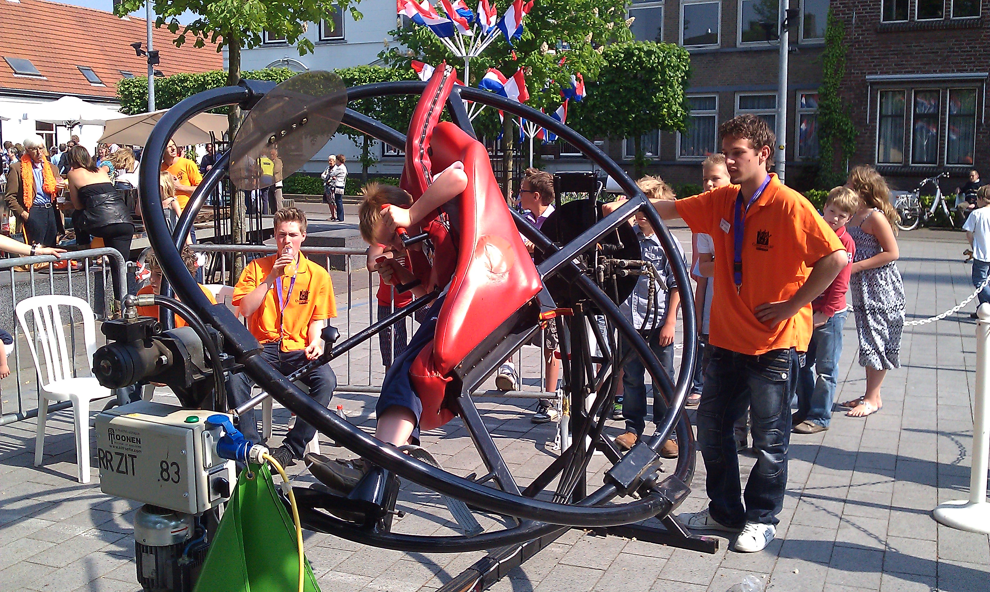 In deze attractie word je in zittende positie alle kanten opgestuurd. De razende roeland zorgt zeker dat jij je geen enkel moment hoeft te vervelen. Deze snelheidsduivel staat op aanhanger en is dus gemakkelijk naar elke locatie te vervoeren. Uiteraard is deze attractie uiterst veilig en door onafhankelijke instanties gekeurd. Voordat je begint met draaien wordt je allereerst goed gezekerd. Iedereen kan zo 100% veilig genieten van zijn/haar doldwaze ritje. De vliegensvlugge en bewegelijke razende Roeland heeft een lengte van 3.10 meter en een breedte van 1.80 meter. De hoogte van de attractie bedraagt 2.40 meter. Attractieverhuur Moonen beschikt ook over een razende roeland in staande positie (SB460.00). De razende roeland zittend op aanhanger is geliefd bij jong en oud. Huur deze attractie, maak uw evenement compleet en creëer onvergetelijke ervaringen.