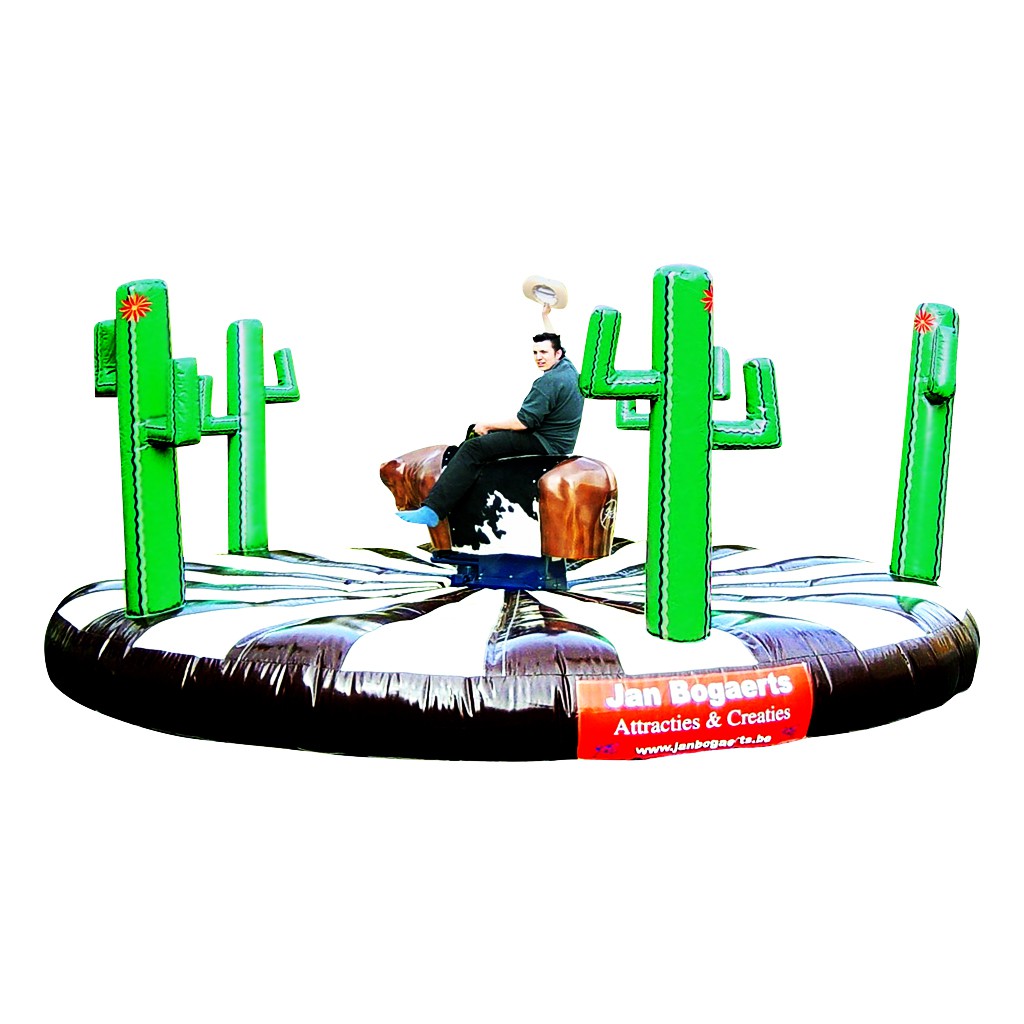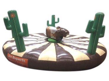 Een exclusieve originele rodeo in Mexicaans design. Neem je sombrero, bestijg de stier en laat maar eens zien wat jij kan. De rodeo – Mexican ride is uitgerust met cactussen, wat een erg grappig totaalplaatje oplevert. Deze rodeo is te bedienen door middel van een gebruiksvriendelijk automatisch besturingspaneel inclusief chronodisplay. De stier kan bokken en ronddraaien in verschillende snelheden, niveaus en richtingen. Voor gebruik van de rodeo – Mexican ride is een vrije onbelaste spanningslijn van 230V/16A nodig. Deze moet binnen 25 meter van de stroombron zijn en mag niet door een ander apparaat zijn belast. De attractie een breedte en lengte (diameter) van 6 meter. Hoe lang houd jij het vol? Uno, dos, tres, quatro ….