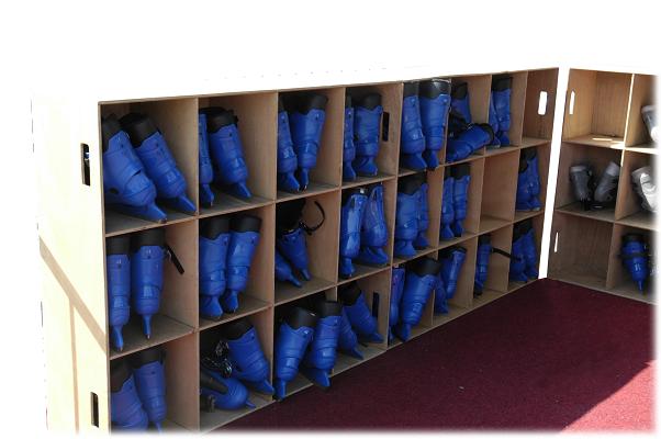 Bij de kunststofschaatsbanen worden robuuste ijshockeyschaatsen inclusief opbergkasten t.b.v. de schaatsen geleverd. Afhankelijk van de grootte van de baan wordt het aantal schaatsen bepaald. De schaatsen worden geleverd in een groot aantal maten van maat 28 tot maat 45, waarbij standaard de nadruk zal liggen bij kinderschaatsen. Wilt u toch meer schaatsen voor volwassenen? Geef dit dan op tijd aan, dan kunnen wij hiervoor zorgen!